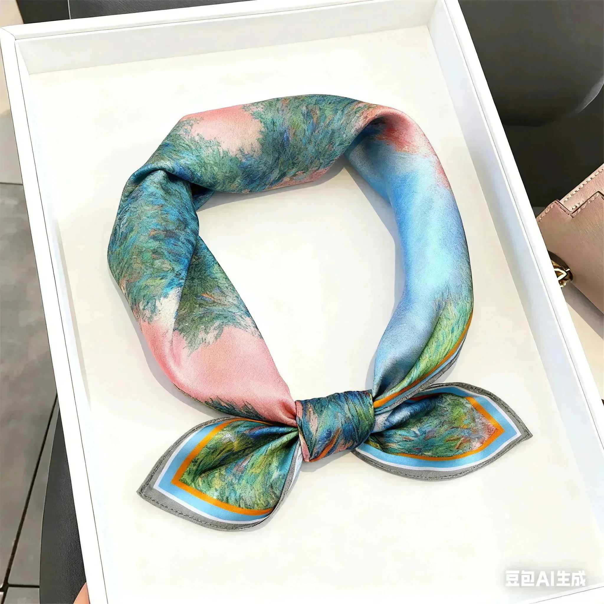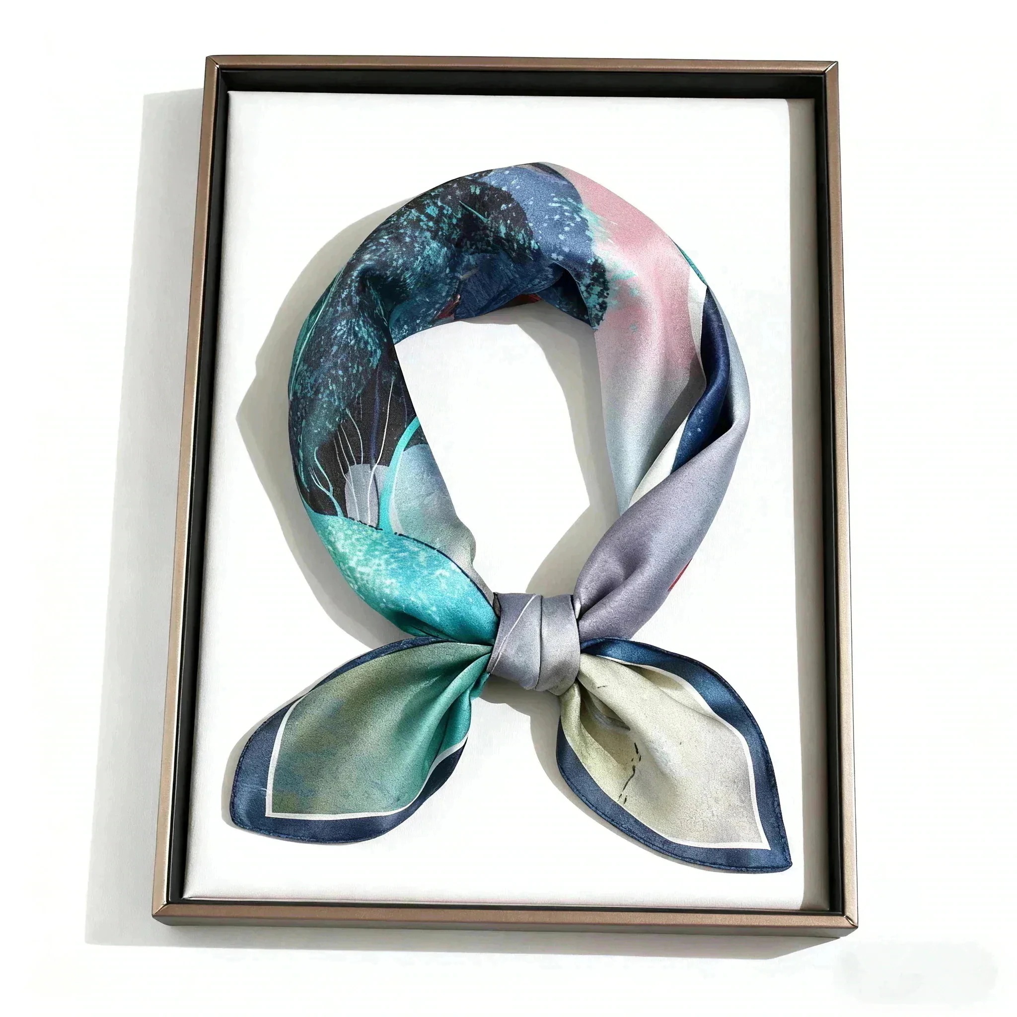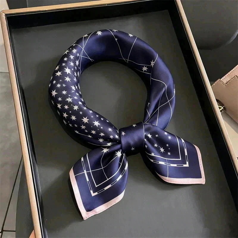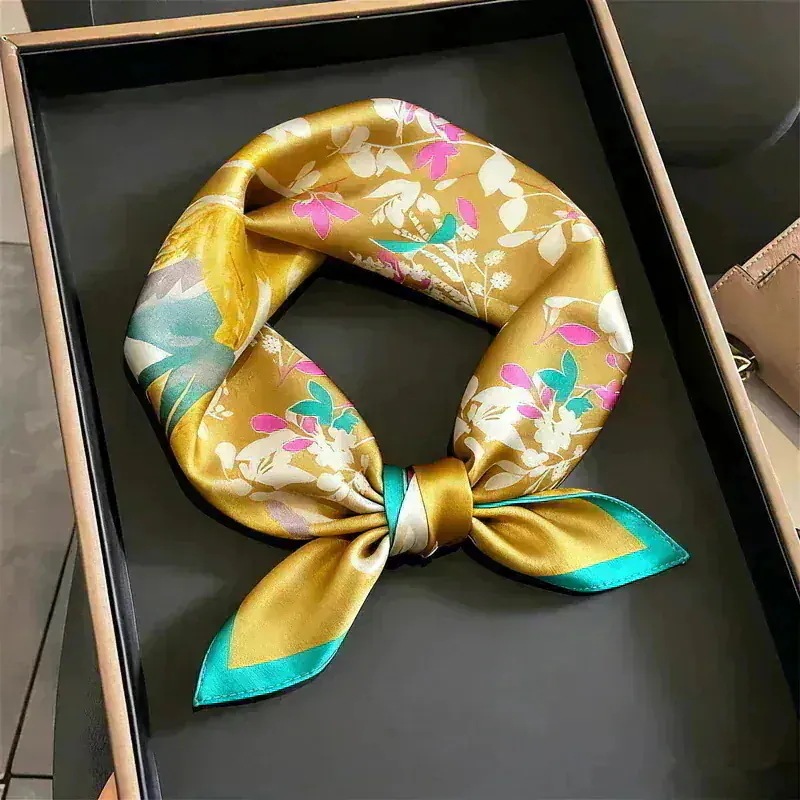 大流行のスカ 秋も夏 春 秋 冬 花柄 三日月柄 優雅 53×53cm プリント 小さい 正方形 オフィススカーフ ネッカチーフ レディース シルク100% 男士女士 母の日 敬老の日