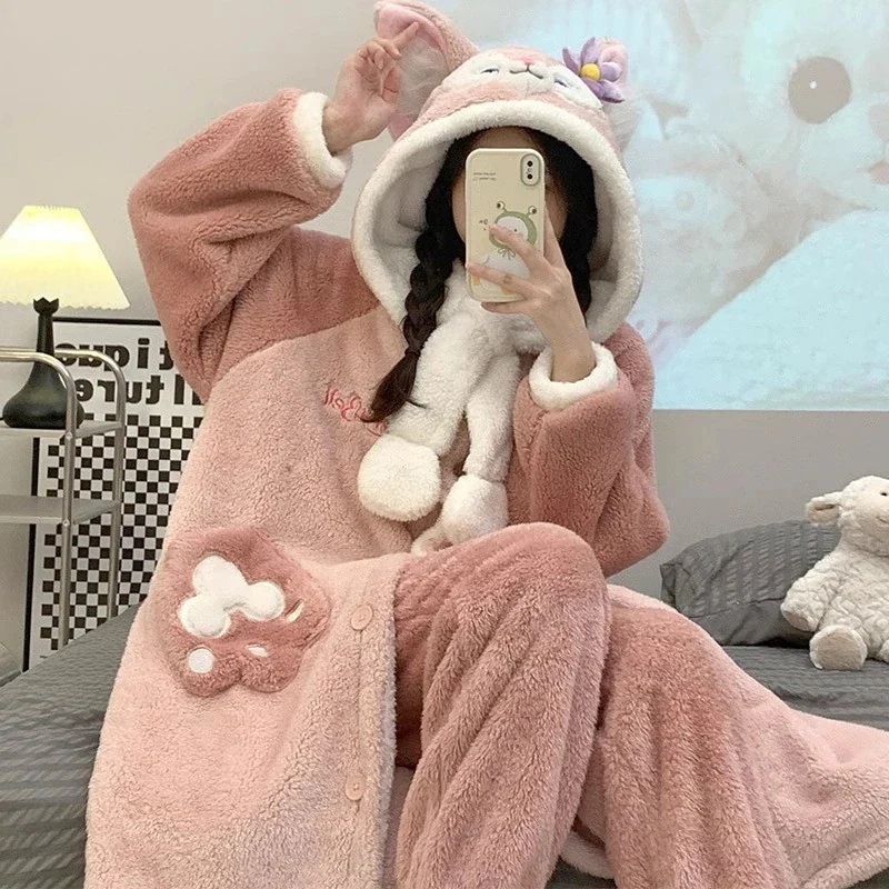 着ぐるみパジャマ 可愛いコーラルフリースパジャマ 秋冬用厚手フランネル 新作フード付きガウン