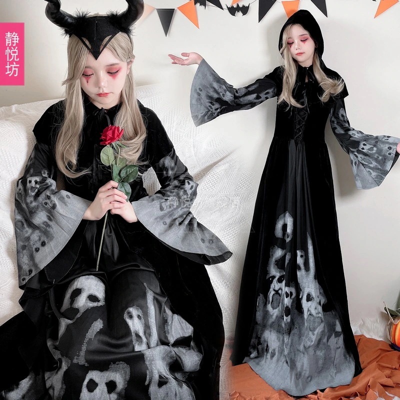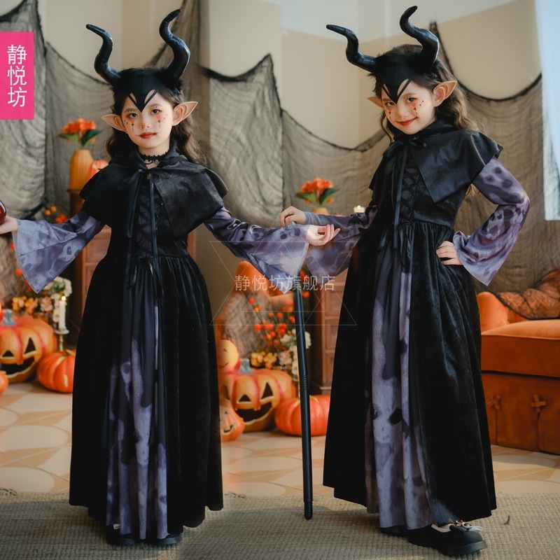 新作 ハロウィン コスプレ 大人/キッズ 吸血鬼花嫁スタイル 魔女 黒ロングドレス ハロウィンパーティー