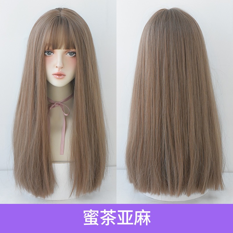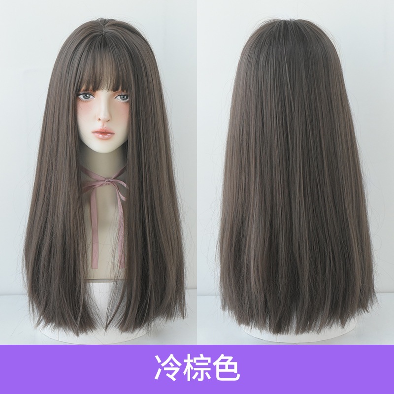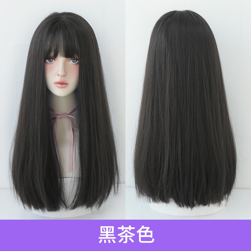 ウィッグ 女性用 ロングヘア フルウィッグ 黒のストレートロング ナチュラル エアリー前髪 フルウィッグ リアル ウィッグ
