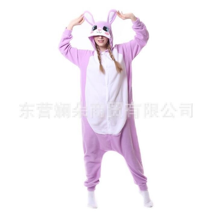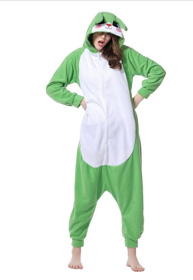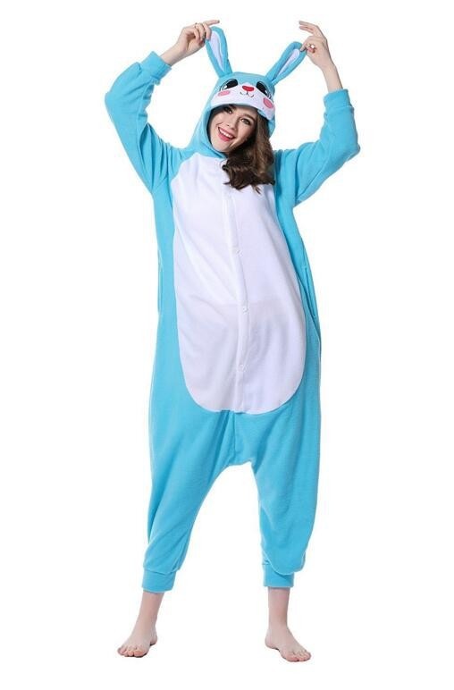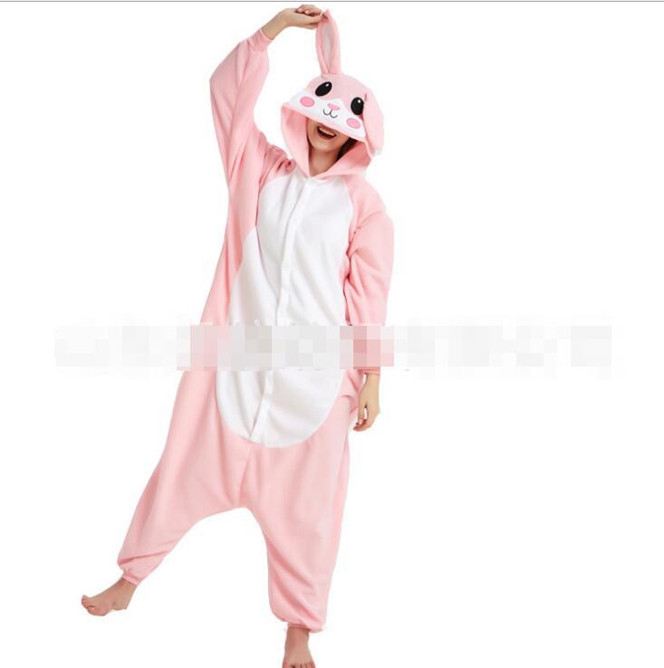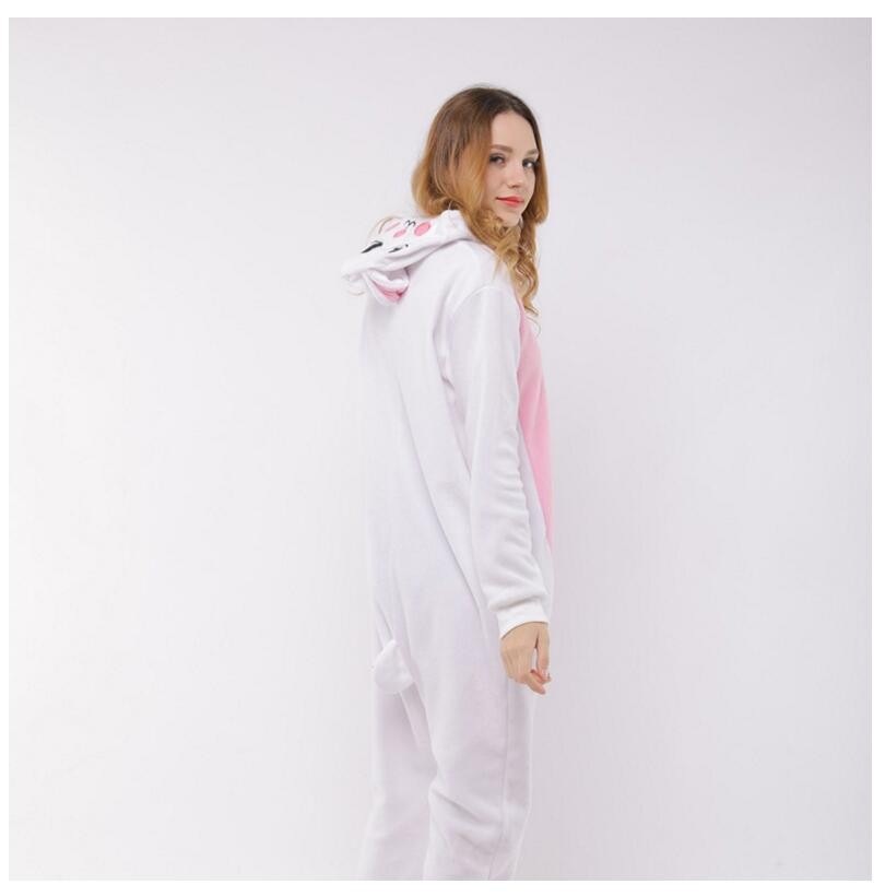 着ぐるみパジャマ ウサギカートゥーン柄 成人用ワンピースパジャマ 動物風デザイン 厚手素材で暖かい 可愛さ満点 男女兼用 フリース生地 ホームウェア・演出服に両用
