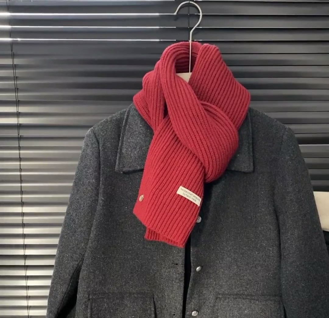 赤いスカーフレディース2025新しい秋と冬のウールオールマッチ韓国風高級小さなスパンコールニットネックカバー