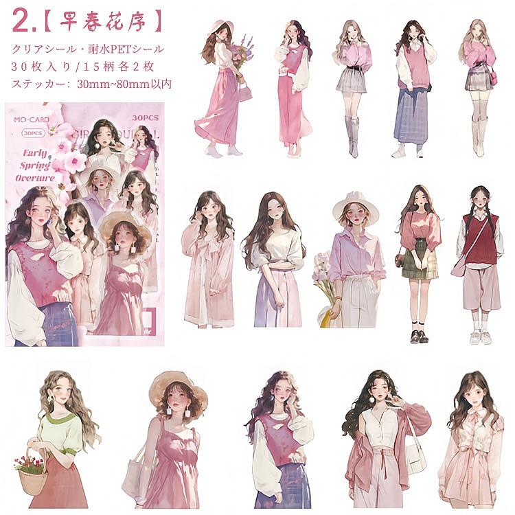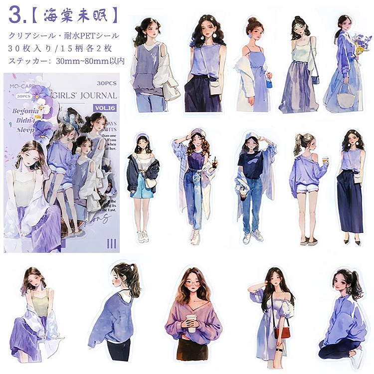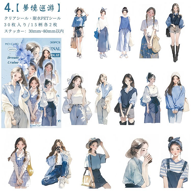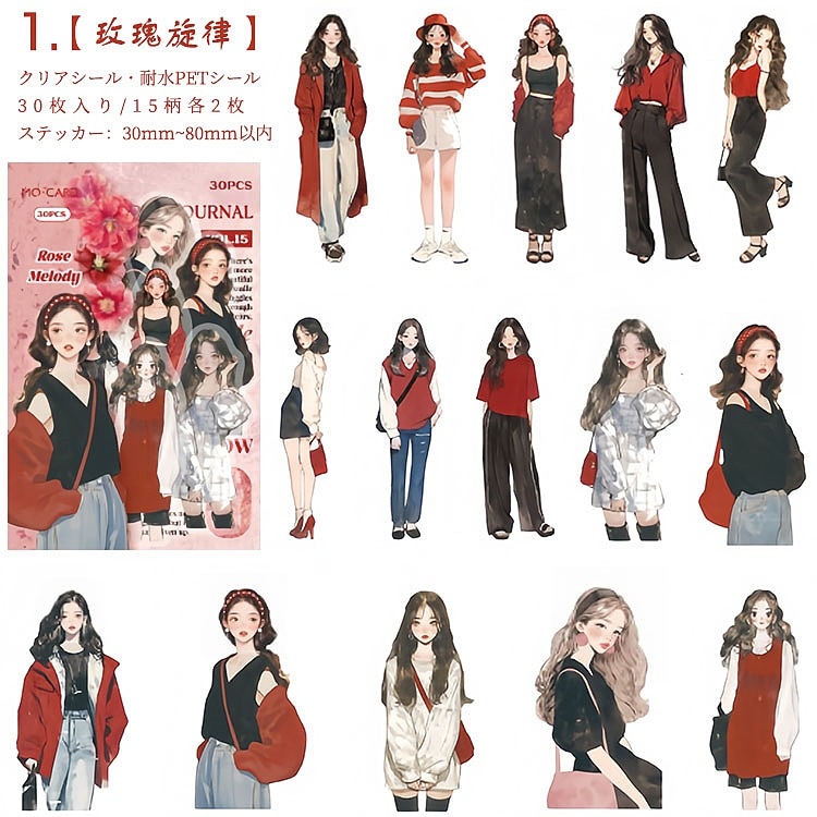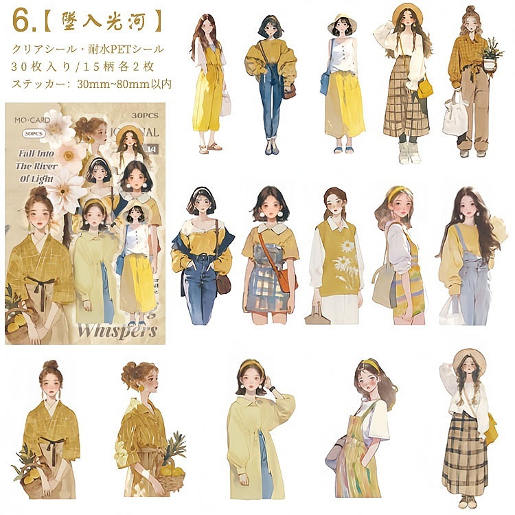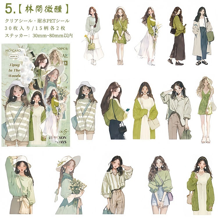 人物シール クリアシール 女性 女の子 ファッション コーデ コラージュ素材 人物 シール 30枚入り PET素材 耐水シール イラストステッカー コラージュ 素材 sztz-30-326
