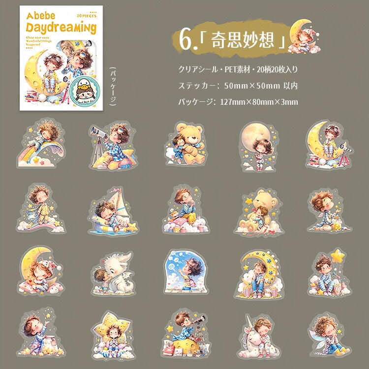 人物シール 人物 物語 かわいい 子供 こども 少年 風船 日常生活 自転車 冒険 望遠鏡 月 つき 耐水 シール キャラクターステッカー コラージュ素材 sztz-20-270