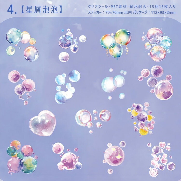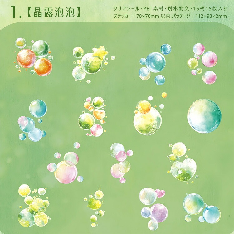 クリアシール ぼかし 水彩 泡 あわ 水玉 ドット しずく 水玉 水滴 シャボン玉 ぼかし 背景 イラスト フレークシール 耐水 PET シール コラージュ素材 sztz-15-047