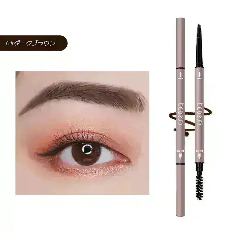 持続性は、イマイチ。ただ細くて書きやすい。ブラウンは濃すぎず、やわらかな印象になる。2本セットなので、1本は持ち歩き用。
