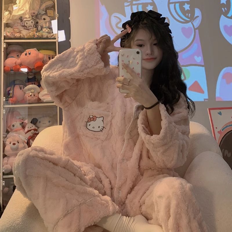 [現品品質良し数量]パジャマ女性コーラルベルベット厚手スーツ学生風フランネル家庭服