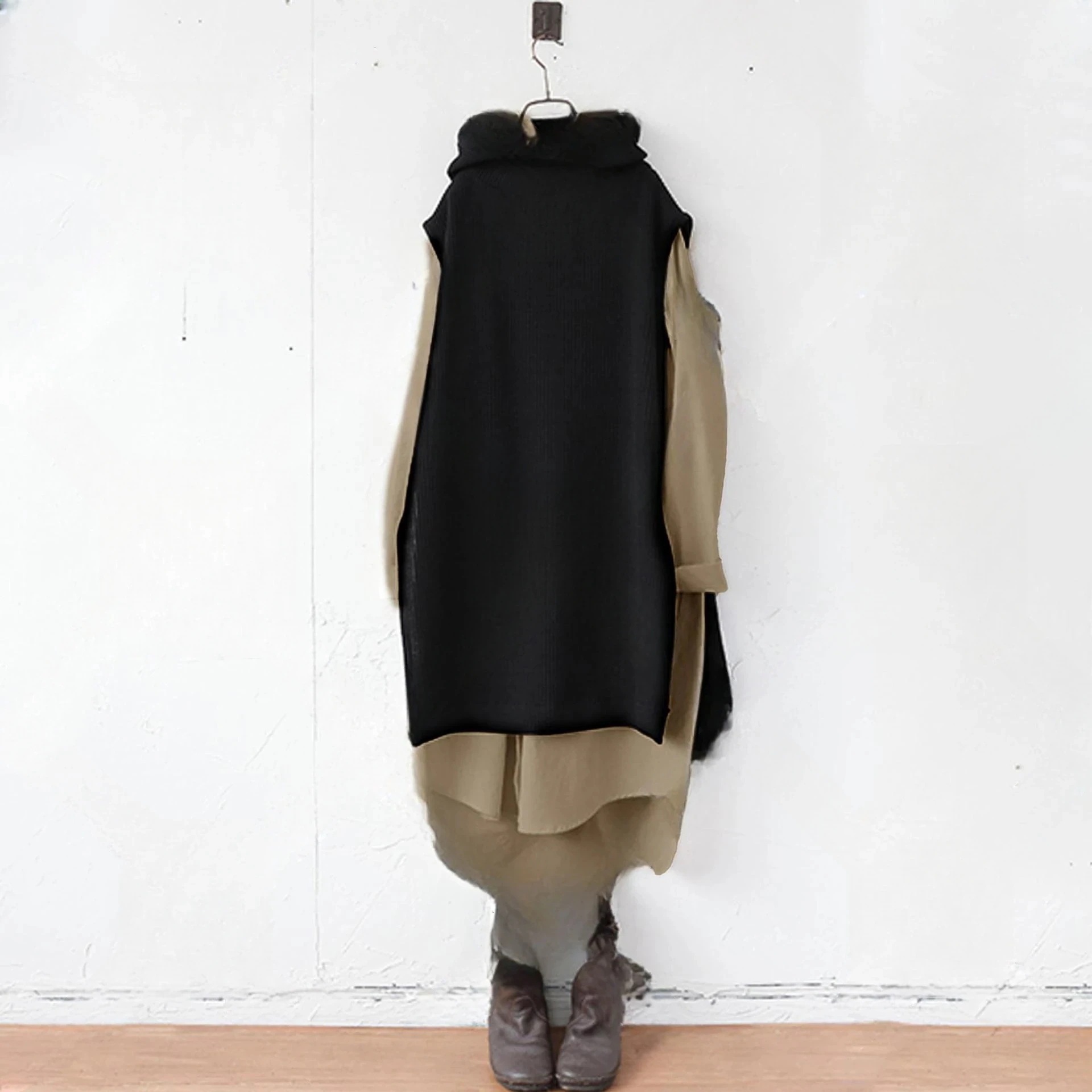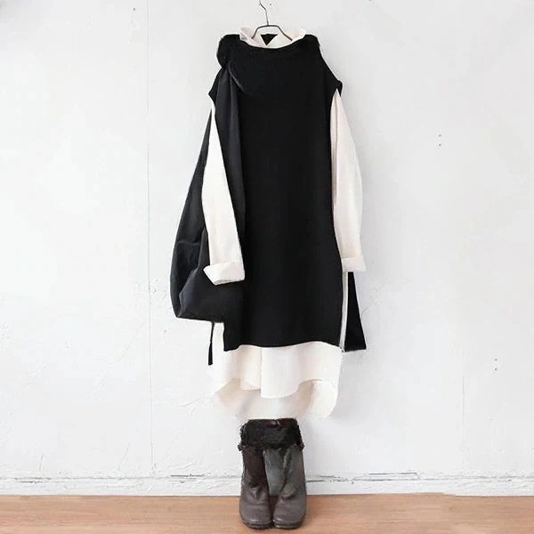 日系2025秋冬新作ノースリーブニットワンピース+折り返し襟ハーフローラルシャツワンピース2点セット
