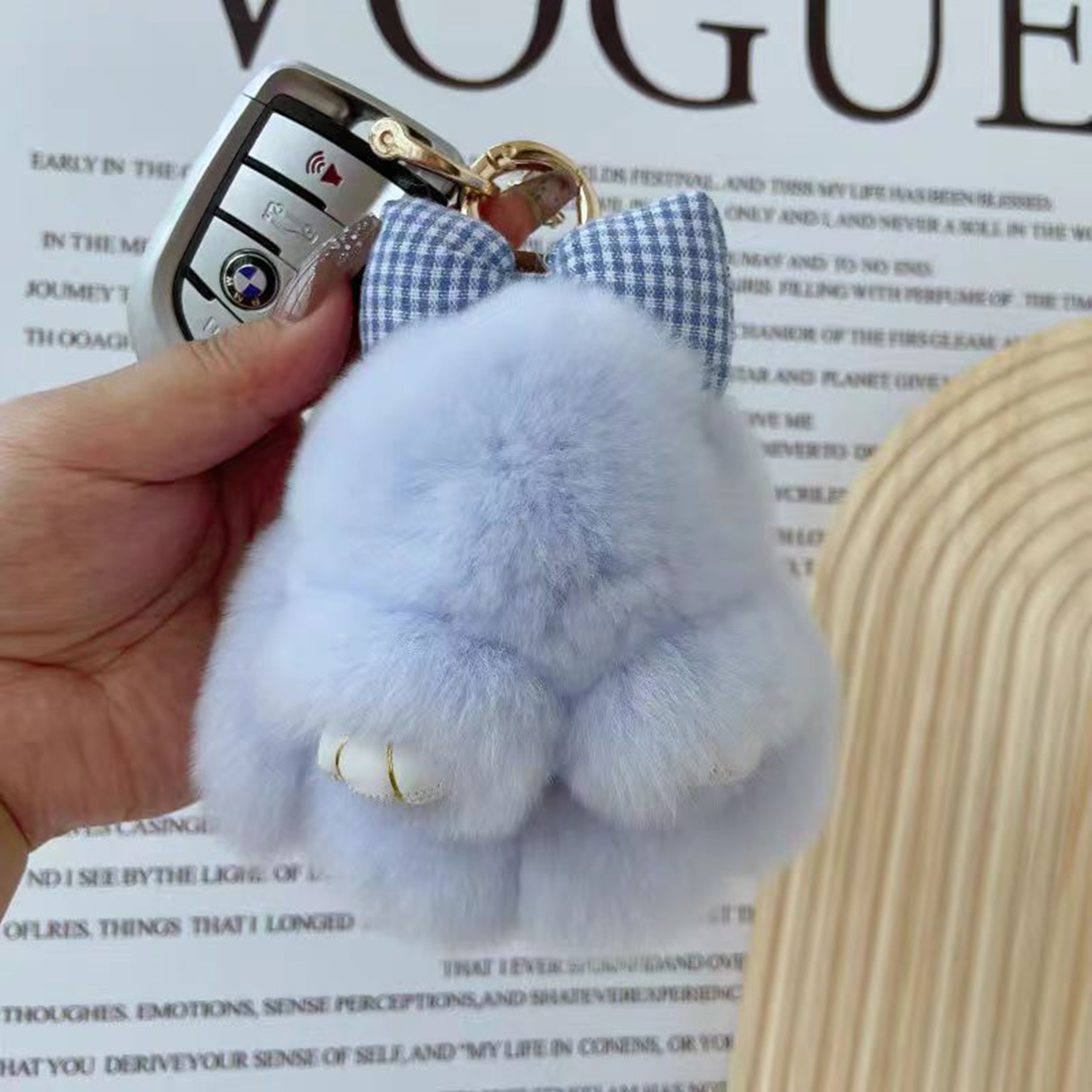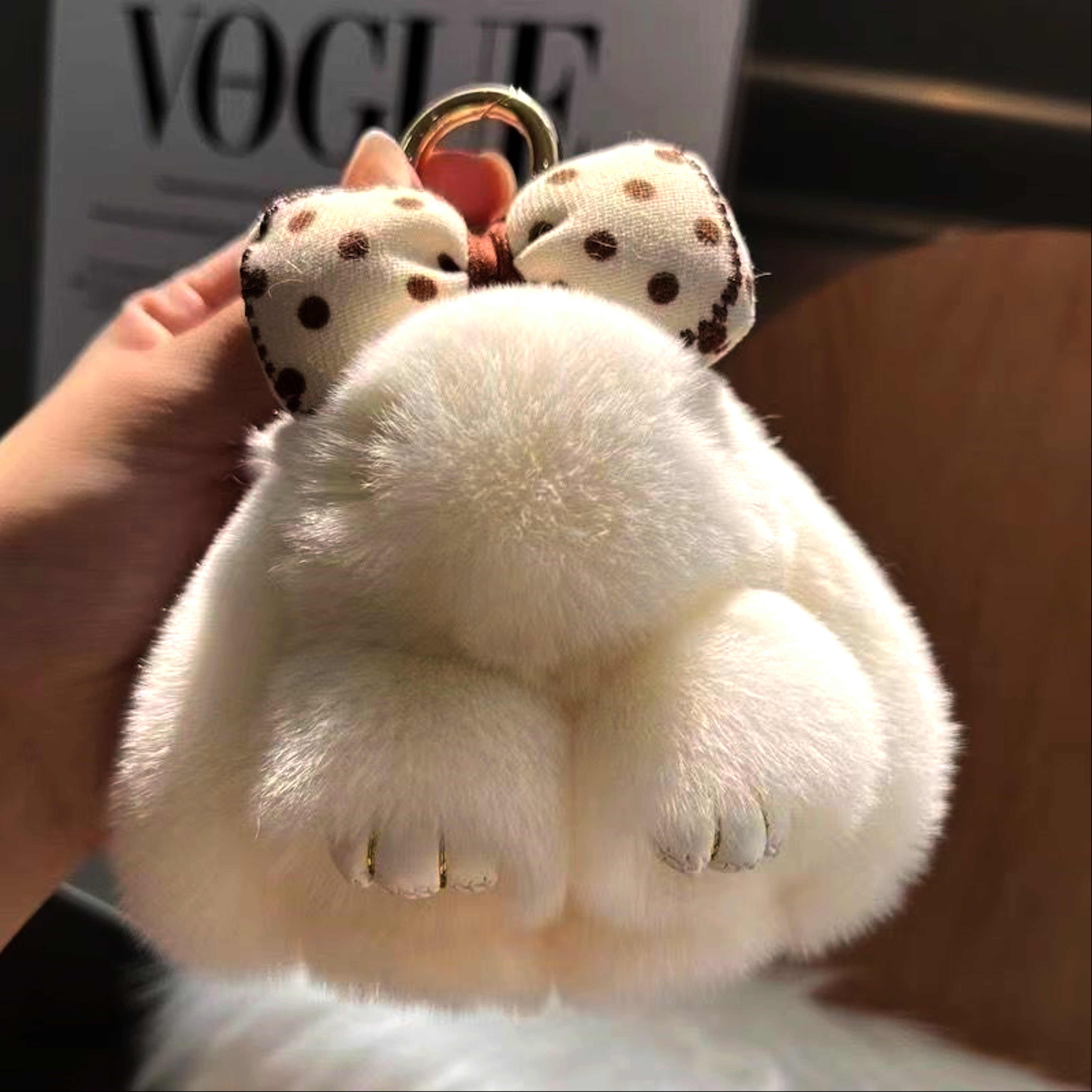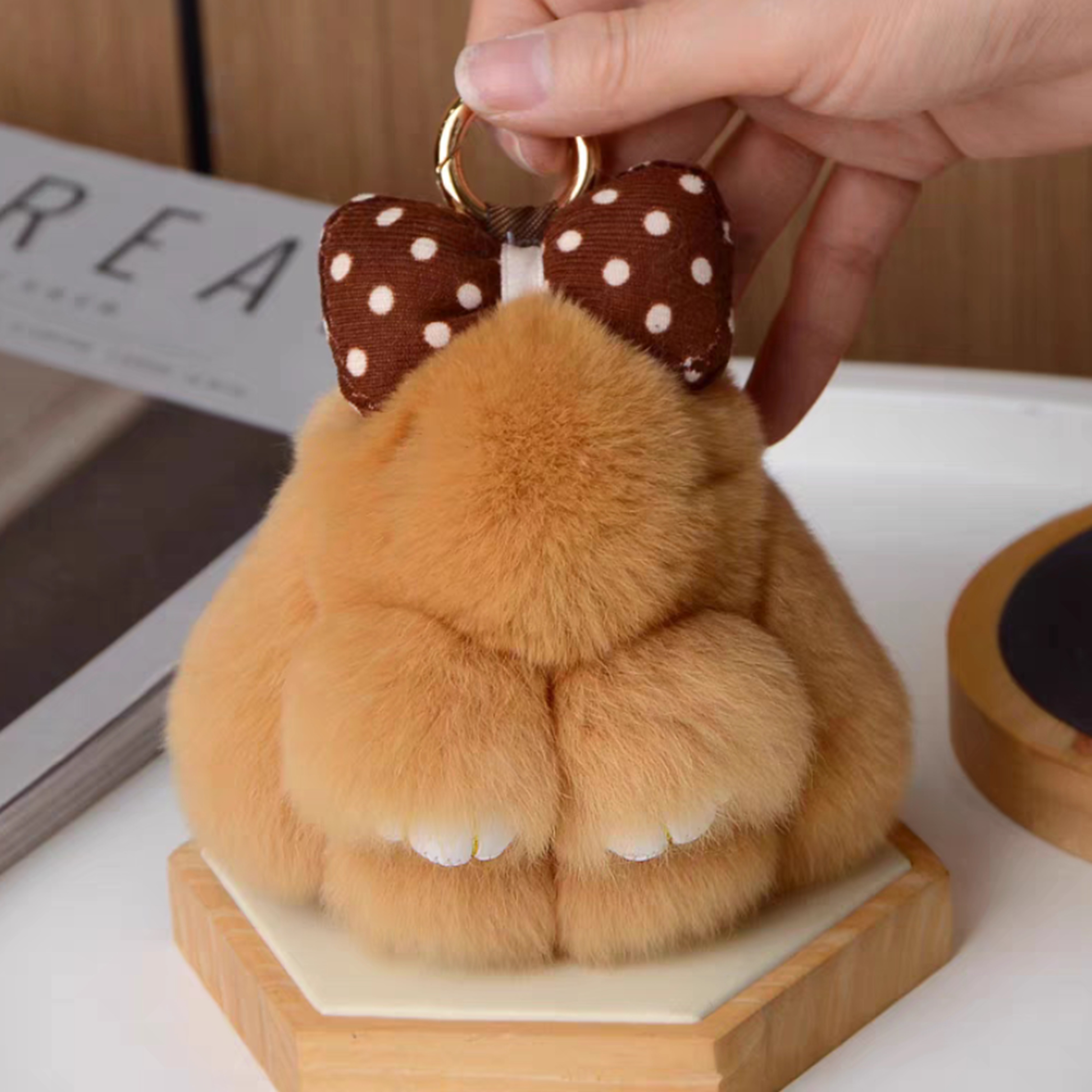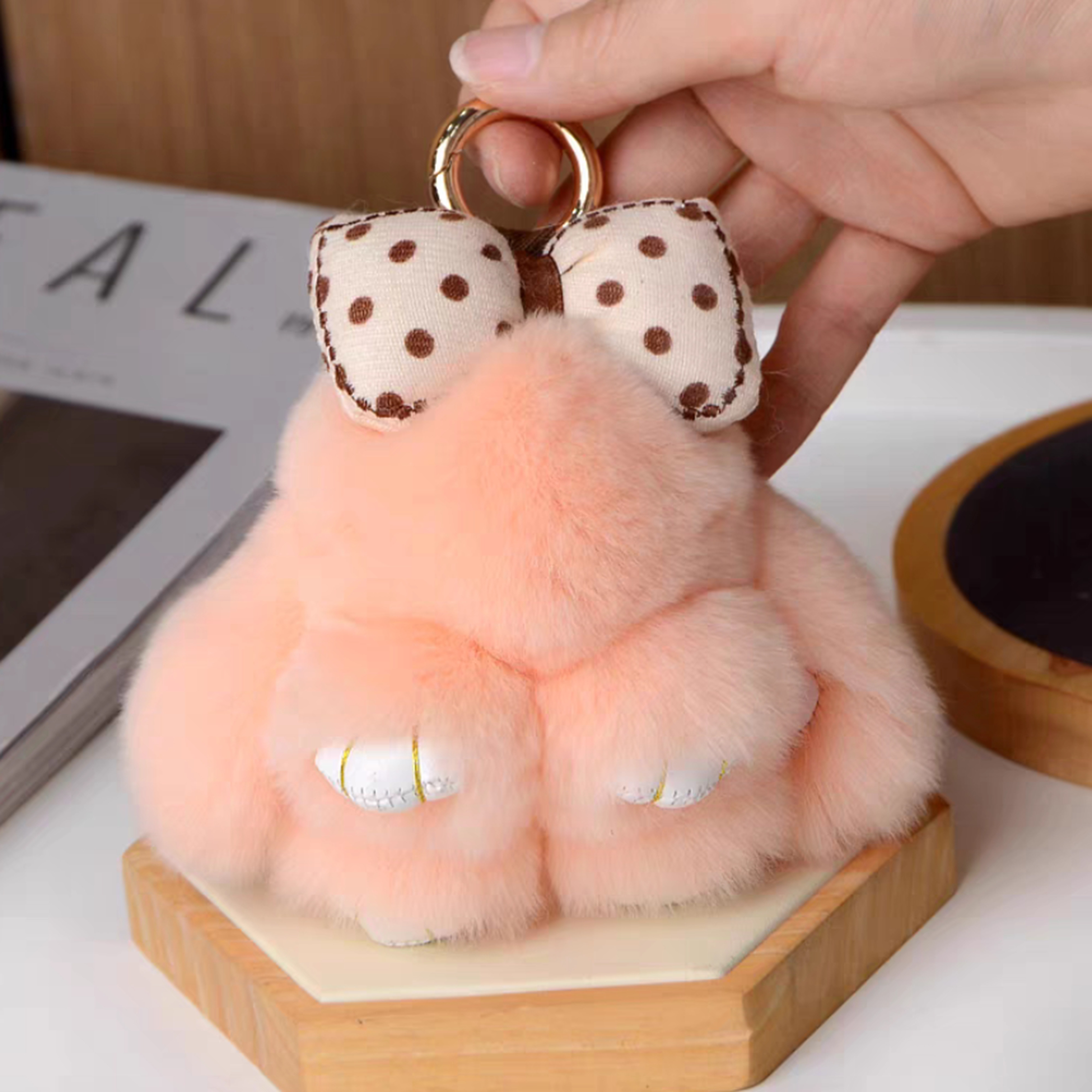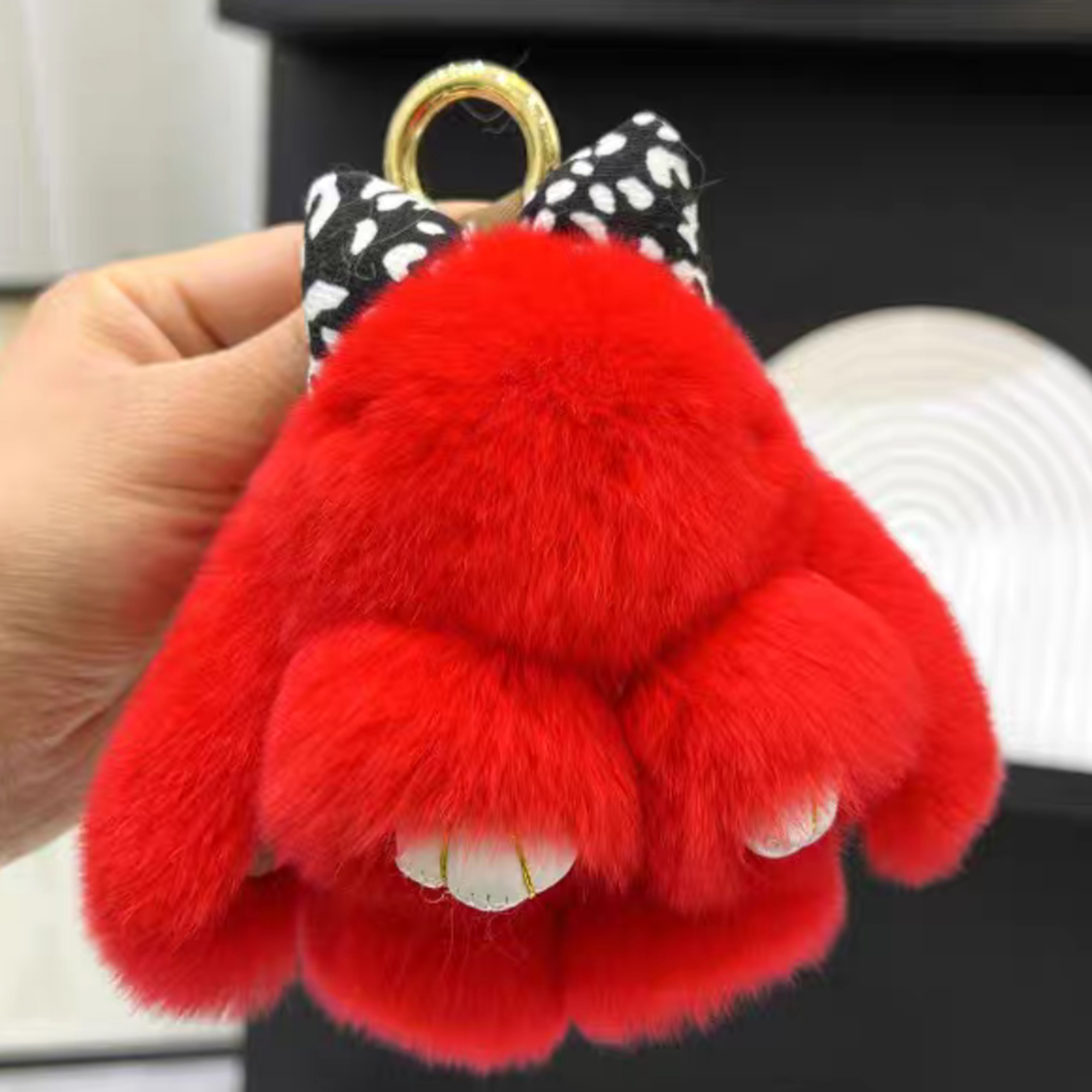 ウサギ兎ちゃんの毛皮 リアルファー製 キーホルダー キーチェーン キーリング バッグチャーム 人形ぬいぐるみ ファーチャーム 携帯ストラップ かわいい ふわふわ 車/家の鍵用 レディース オシャレ