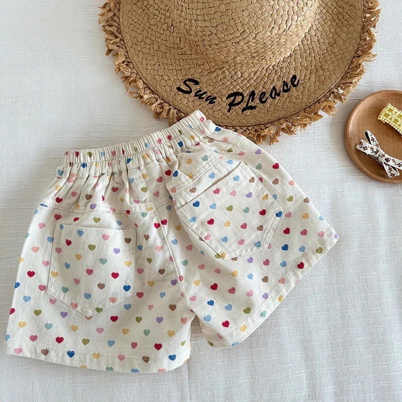 女の子用ショーツ 25の新作子供用韓国版カラーハートプリントショーツ