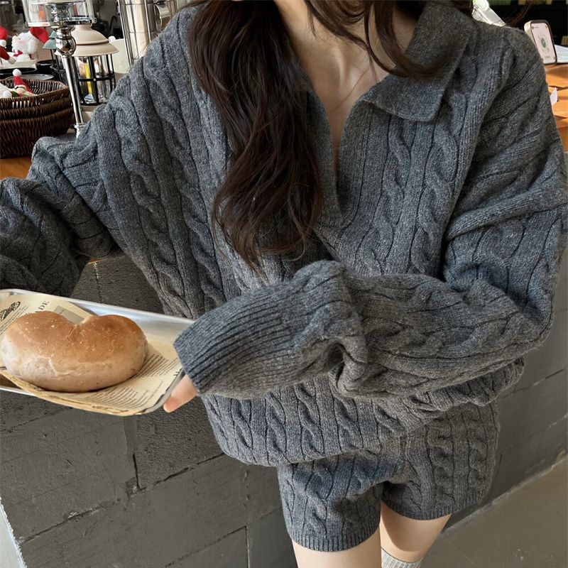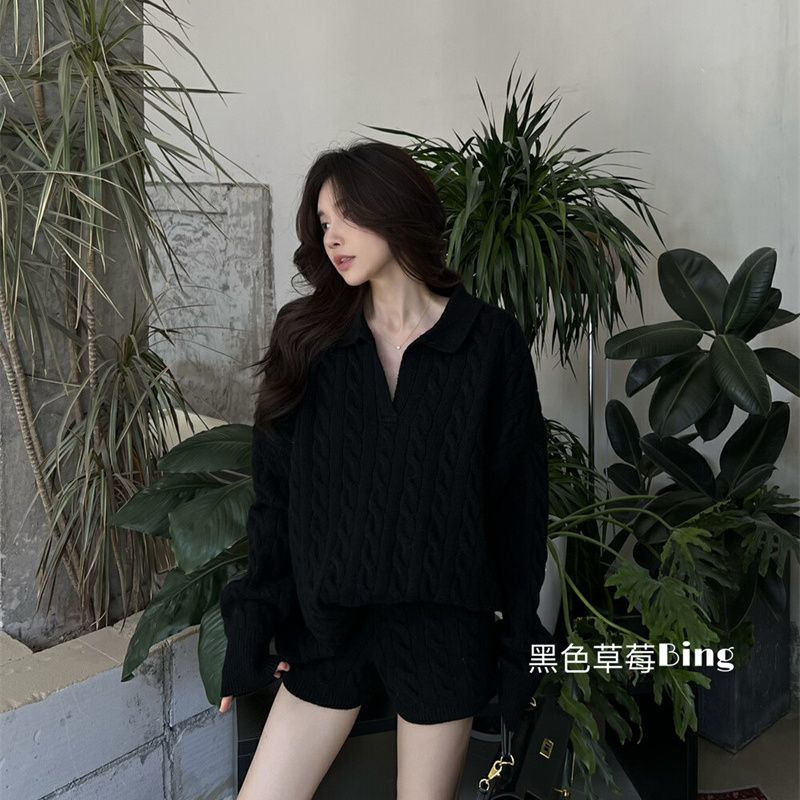 3日以内に出荷 早 セットアップ 涼しく楽ちんセットアップ新作 韓国ファッションだるい 感 ツイストセーターゆったりニットトップスショートパンツ 二点セット