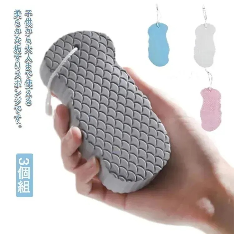 3個組 ボディスポンジ シャワースポンジ バススポンジ 柔らかい 角質取り 垢すり 子供用 大人用 角質除去 シャワースポンジ 肌ケア お風呂 男女兼用 入浴用品 垢すりスポンジ