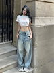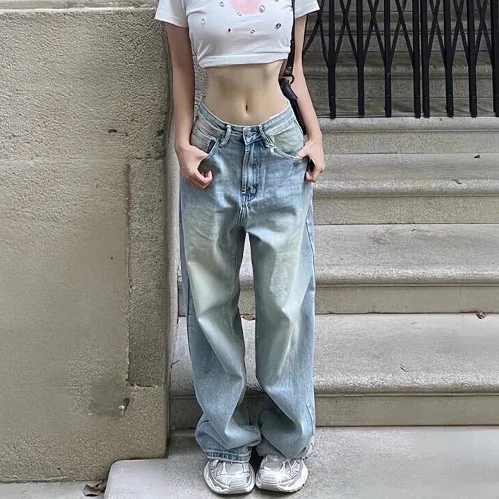 S-2XL デニムパンツ ジーンズ gパン 長ズボン ローライズ ストレート 着痩せ ゆったり ワイドパンツ レディース ギャル カジュアル ファッション 大きいサイズ