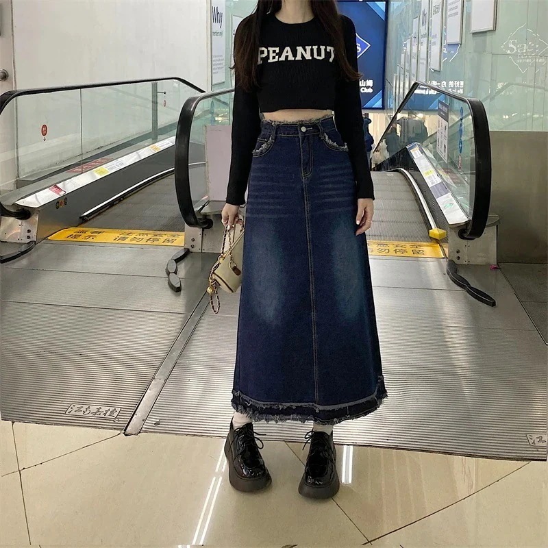 大きいサイズの女性のファットMMのレトロなローエッジのデニムスカートの女性のハイウエストと大きなサイズのAラインのスカートとのミドル丈の洋ナシの形のスカート