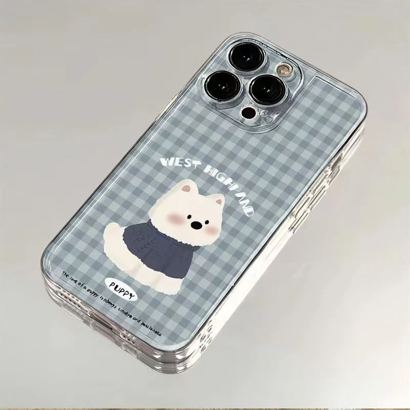 アップルの16151413 promax携帯ケース用透明宇宙殻チェックブルーセーター西高地