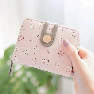 ウォレット財布可愛いピンクフラワーミニ財布二つ折りレディースカードケース小銭入れ コインケース韓国ファッション財布
