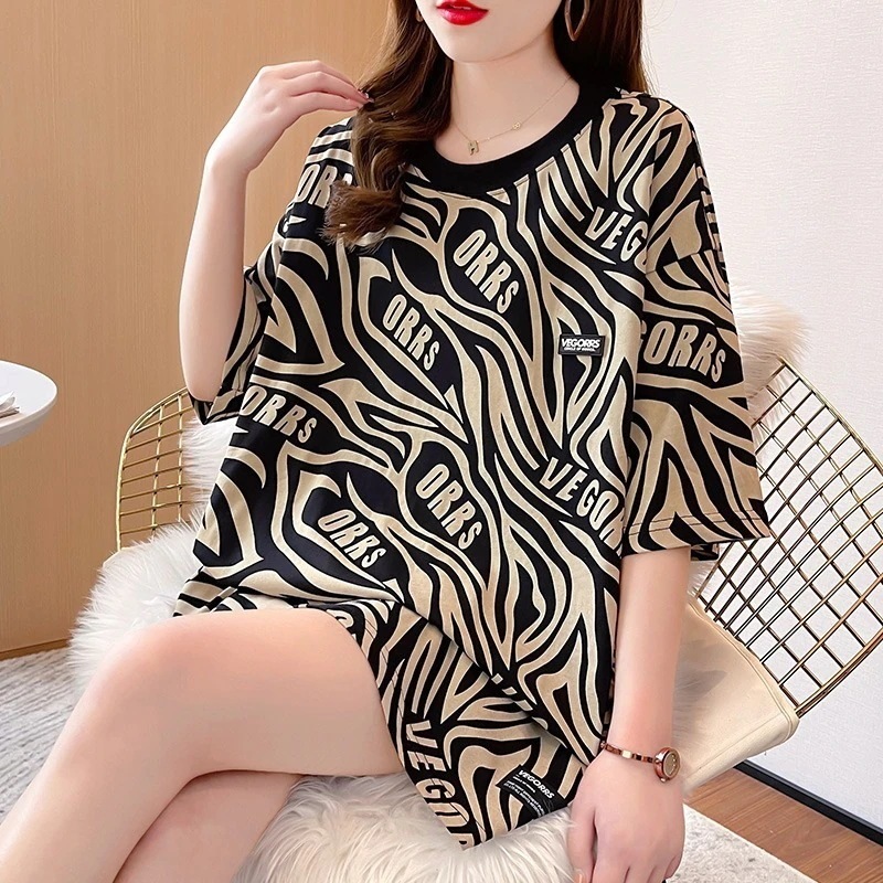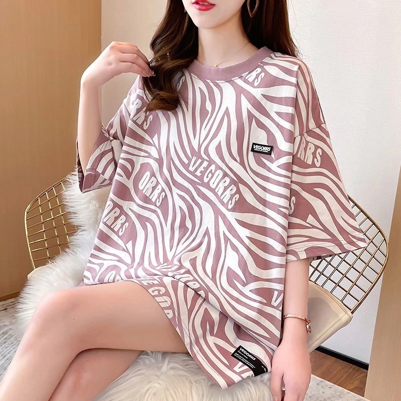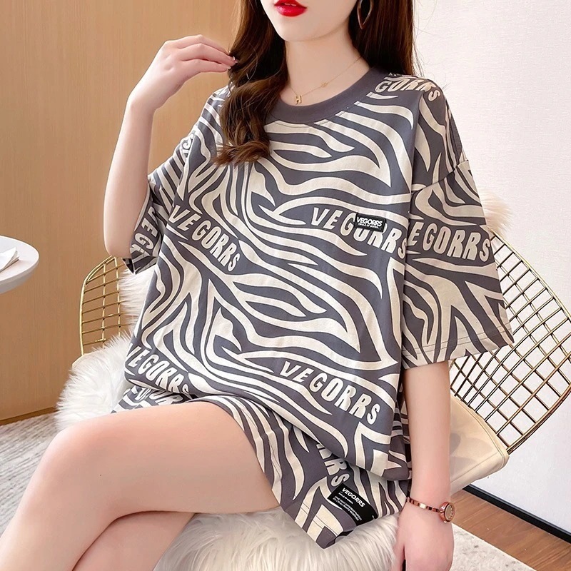 新型シマウマ柄プリント半袖tシャツ女性ゆるいヒップホップ半袖上着