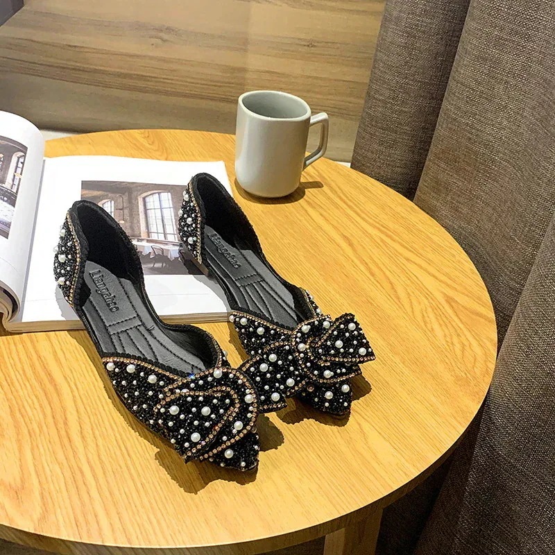 フラットソールシューズレディース新レトロ浅口先のとがったソフトボトムエンドウ豆シューズボウノット