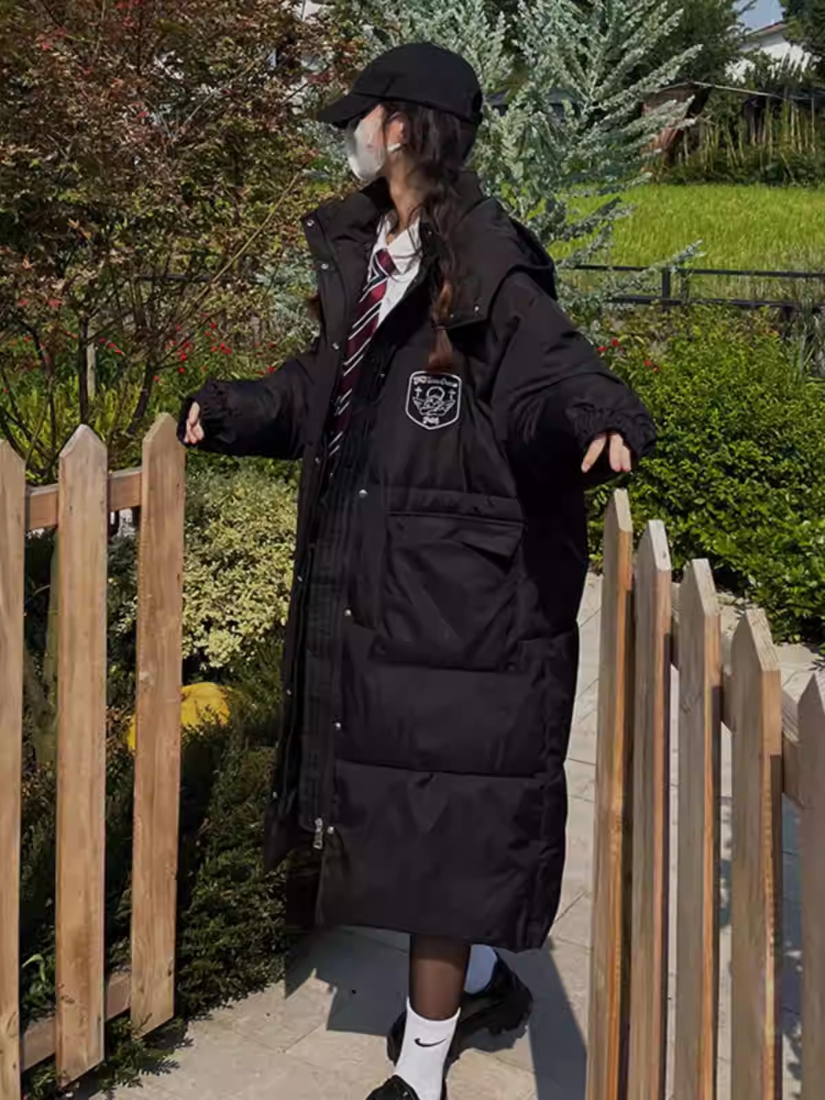 原宿ストリート 新作 韓国ドラマ 女子学生 カレッジスタイル パーカー フード付き 人気商品超目玉 膝丈 ミディアムロング ダウンジャケット アウター トレンディ 綿入れ