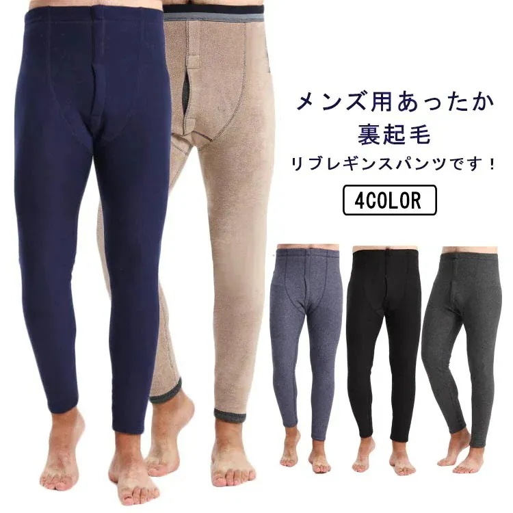 アンダーウェア 防寒 裏起毛 厚地 メンズ ヒートテック 裏ボア レギンス 暖かい パンツ あったか 肌着 吸湿 ウェア 男性 インナー 紳士 M モコモコ 下着 ウェア ブラック