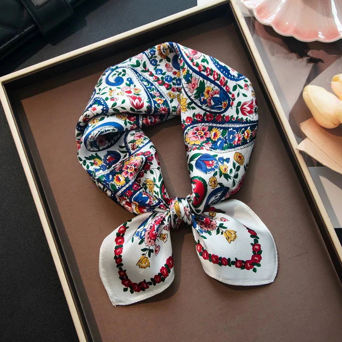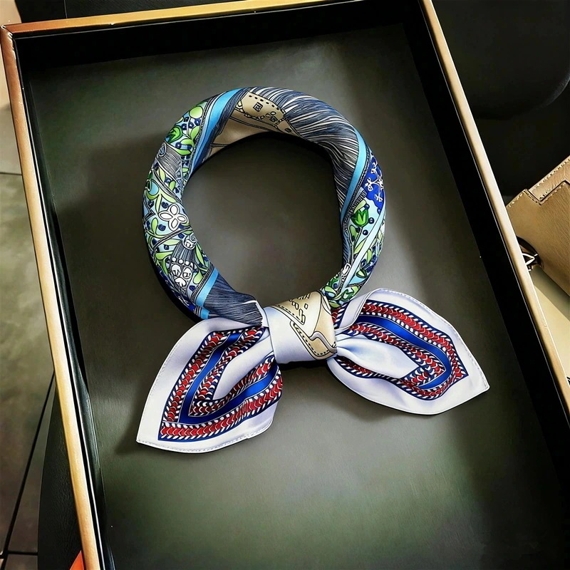 男士 女士 春 夏 秋 冬 父の日特集 シルク100% スカーフ 53CM 正方形 緑 プリント柄 ギフト包装 ヘッドスカーフ ト ネッカチーフ 誕生日プレゼント