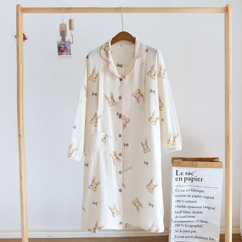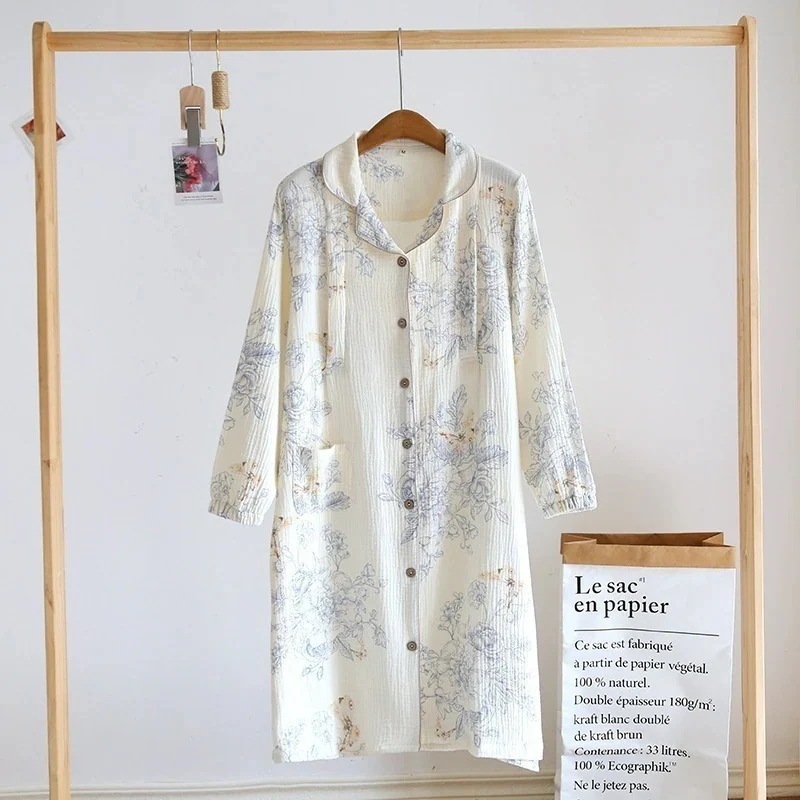 純綿ちりめん 授乳寝間着 薄手 産後 綿ガーゼ 閉じ込めワンピース マタニティ パジャマワンピース