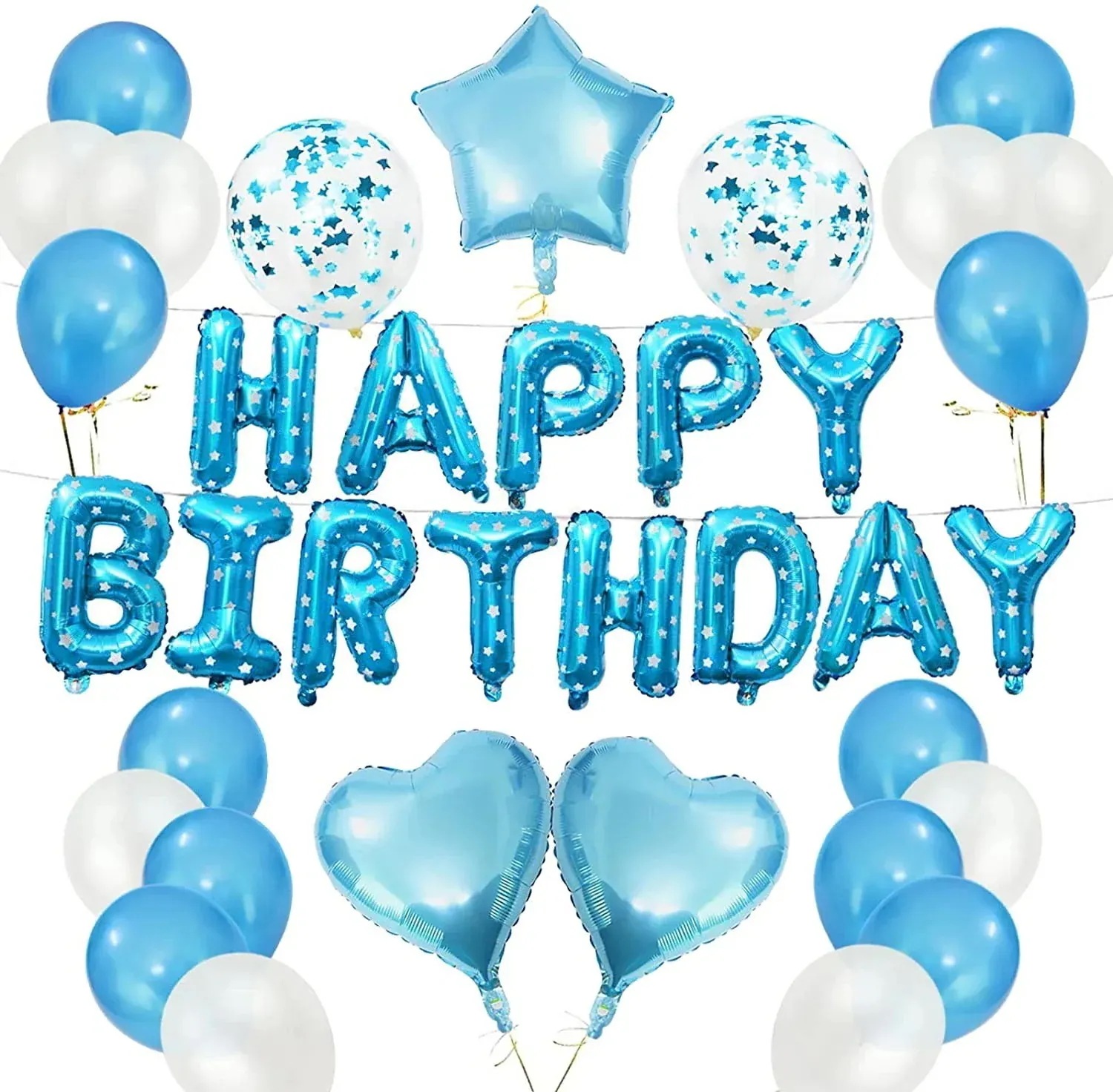 [現品/新品]誕生日風船セットバースデー飾りバルーン子供大人誕生日飾り付け環境に優 しく (空気入れ両面シール付け