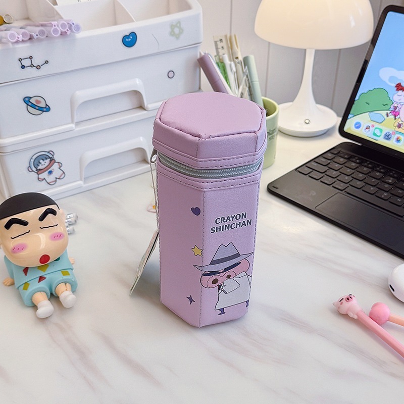 クレヨンしんちゃん漫画筆筒かわいいPU耐久性縦型筆袋学習用品高颜値学生書類