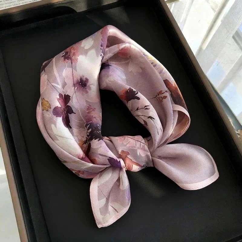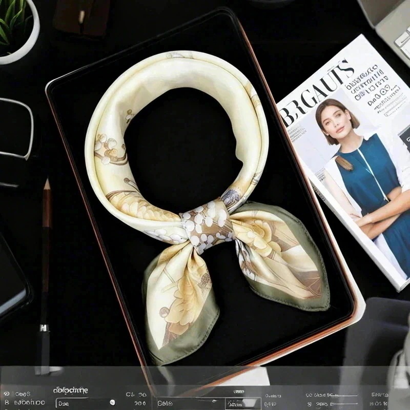 【ギフト包装済】レディース シルク スカーフ 53cm ベージュ 水玉 柄 春 夏 秋 冬 誕生日 プレゼント ヘッドスカーフ ストール ヒジャブ
