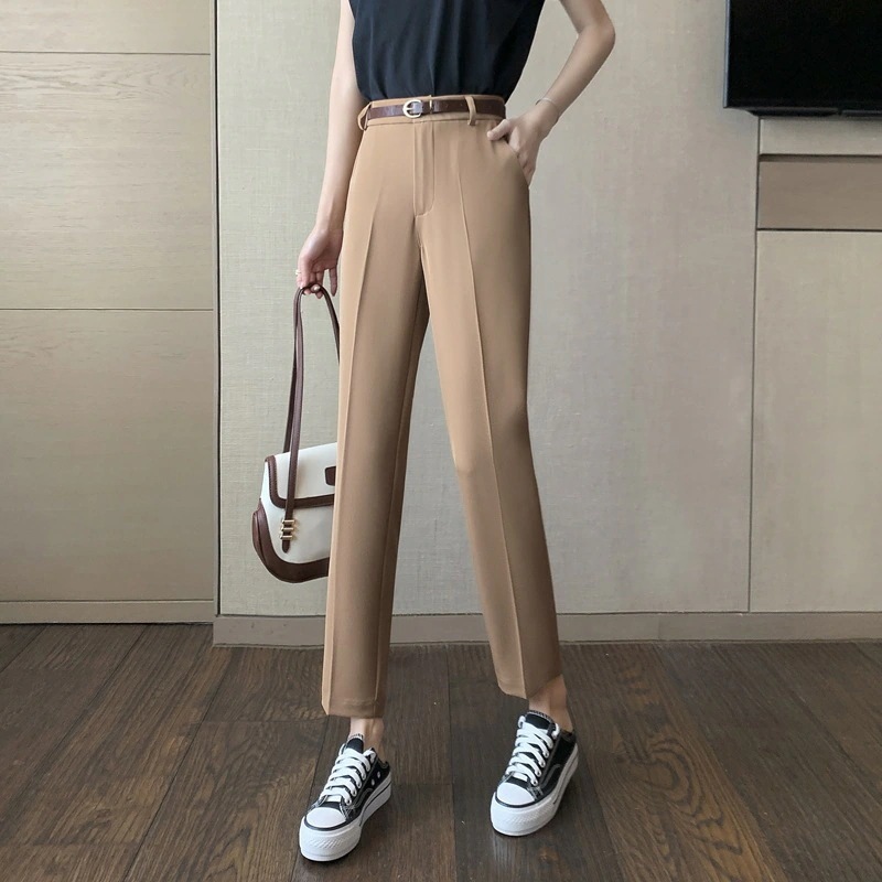 ひんやりボトムス仕事スーツパンツストレート着痩せハーレムパンツとズボン レディース