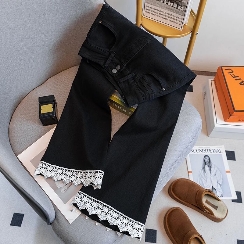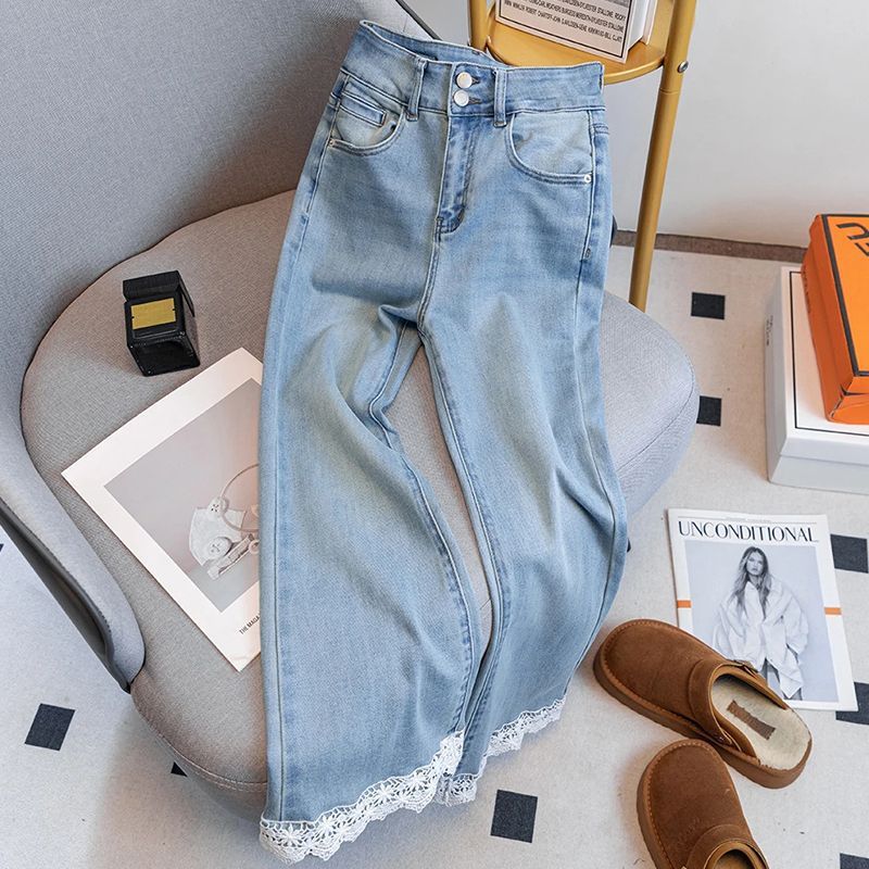 25淡色ハイウエスト九分マイクロフレアジーンズ女性薄太りmmスリムストレッチフレアパンツ