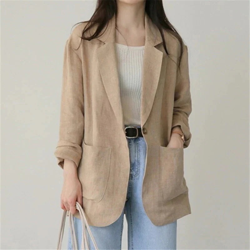 のジャケット英国スタイルのンスーツ女性のカジュアルな長袖の綿とンの小さなスーツジャケット