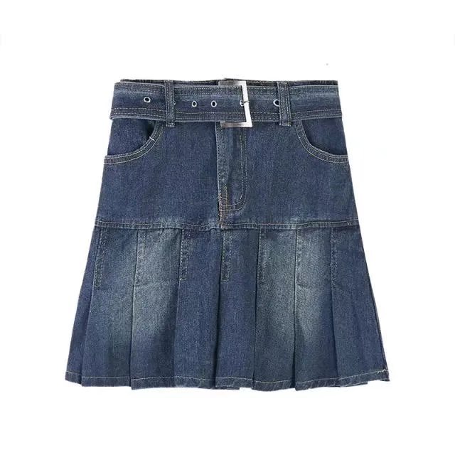 デニムスカート ミニスカート フリル裾 Aライン レディース プリーツスカート ダメージ Aライン 可愛い