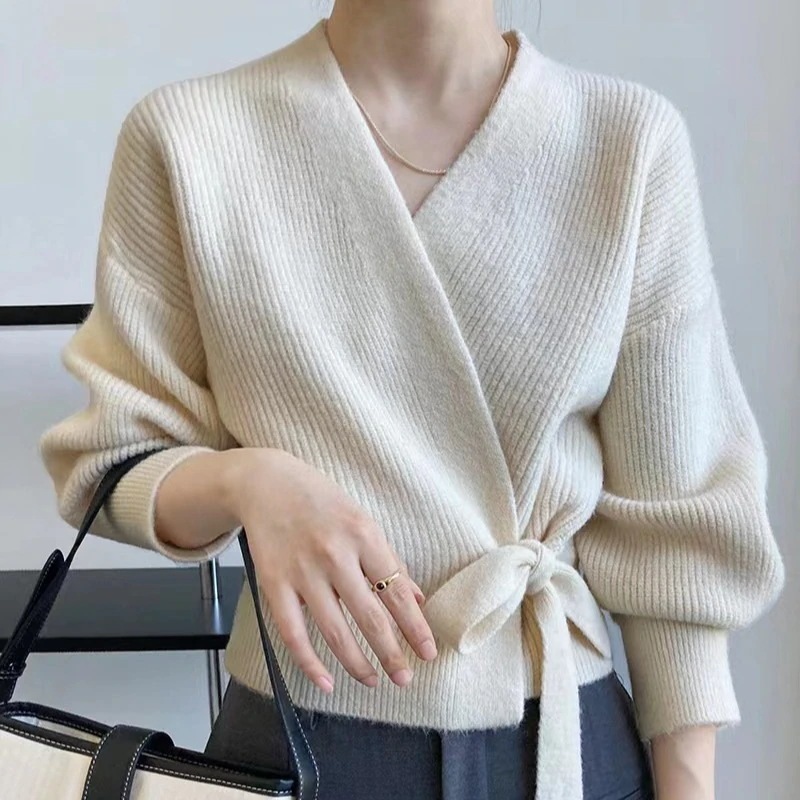 タートルネック春 ニュースタイル Vネック ゆったり ニットカーディガン おしゃれ 着痩せ 高級感 セーター 通勤 カーディガン 人気なリブニット リボン