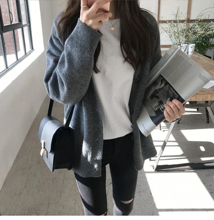 タートルネックベーシックニット春アウター ニュースタイル おしゃれ ゆったり 長袖 トップス カーディガン 人気なリブニット リボン