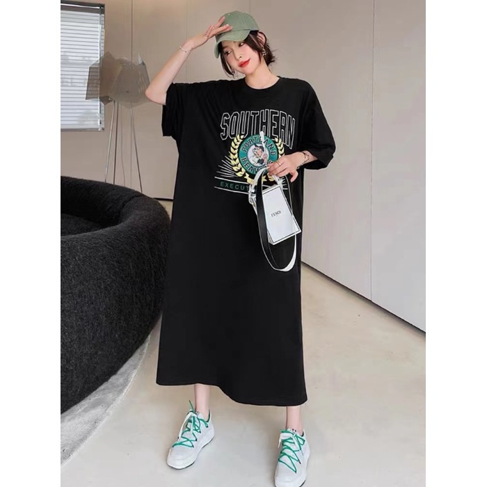 Tシャツワンピース レディース ロング丈 パジャマ 夏 大きいサイズ ゆったりスリット シンプル 大きいサイズ 半袖