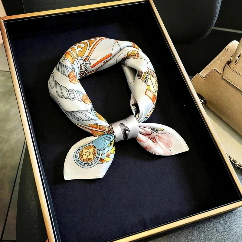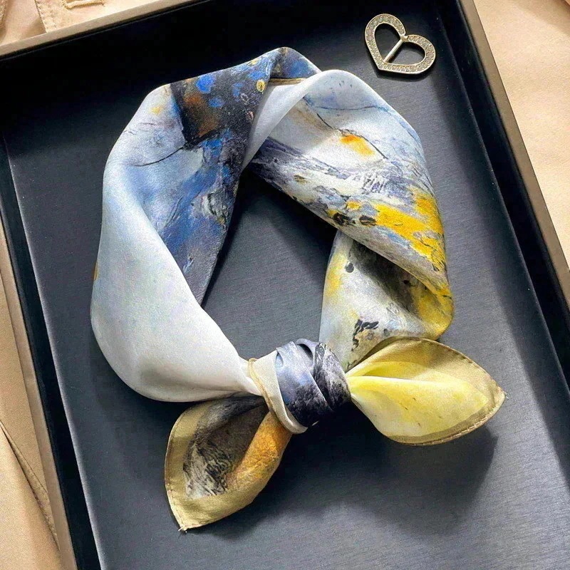 【誕生日プレゼント】上質シルク100% スクエアスカーフ 53cm 淡いピンク 紫 抽象柄 秋冬 ギフト包装 対応 ネッカチーフ スカーフ
