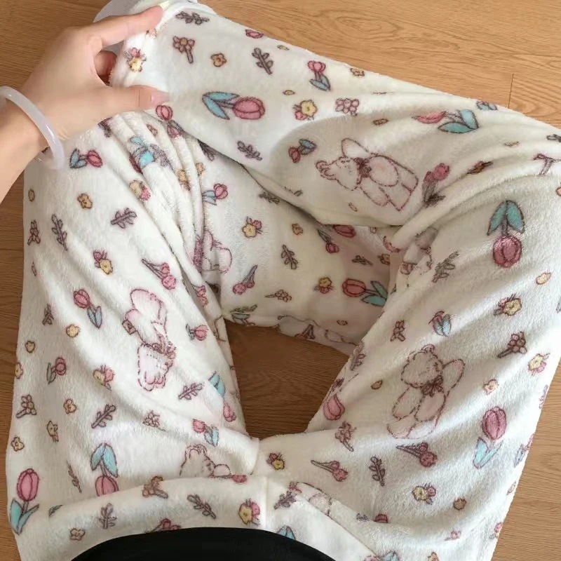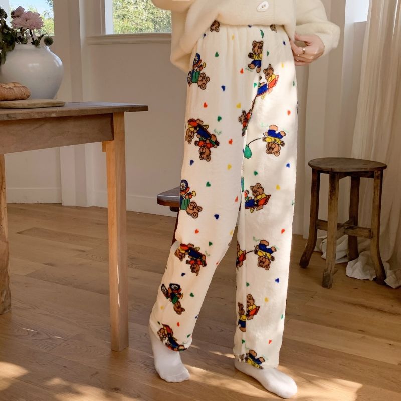 新入荷 快適 ルームウェア パンツ パジャマパンツ 女性用 ホームウェアパンツ 裏起毛 秋冬用 保温パンツ 裏起毛 厚手 ゆったり ロングパンツ