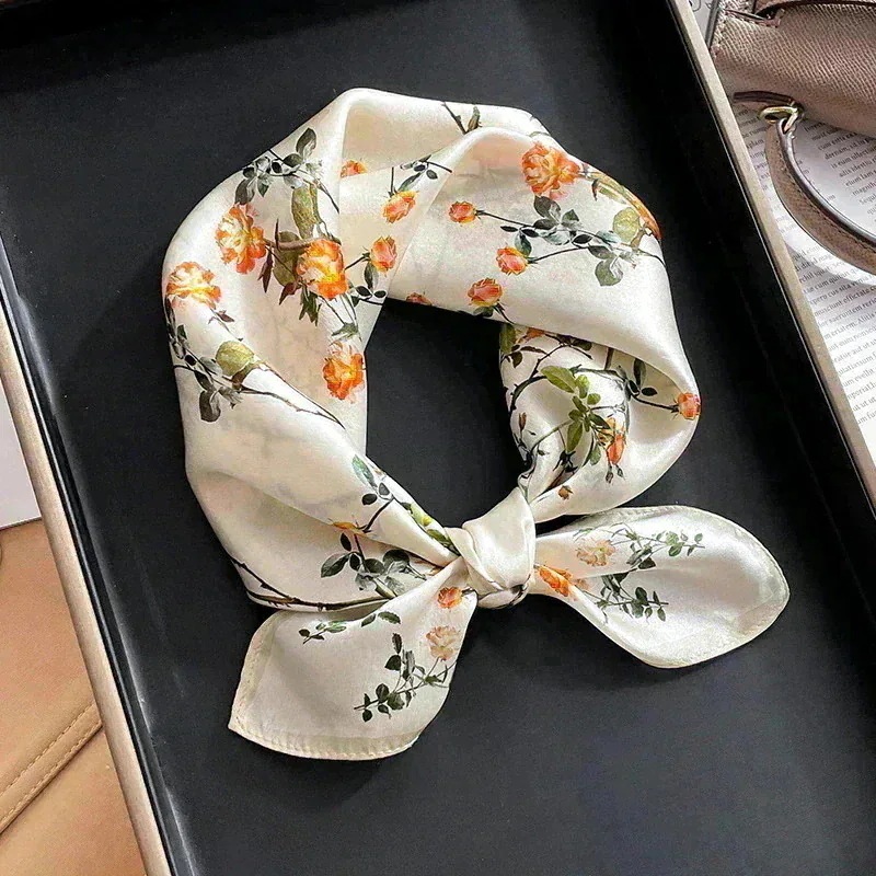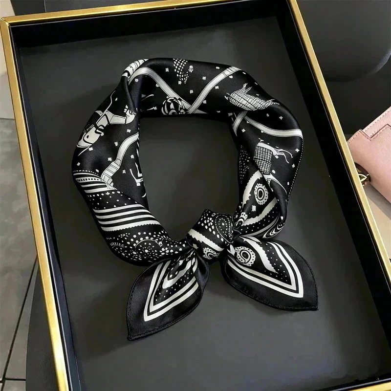 【父の日 母の日贈り物】シルク100% スカーフ 53cm 正方形 黒 白 花柄 幾何学模様 ギフト包装 春 秋 ネッカチーフ プレゼント 包装 無料 ヘアスカーフ