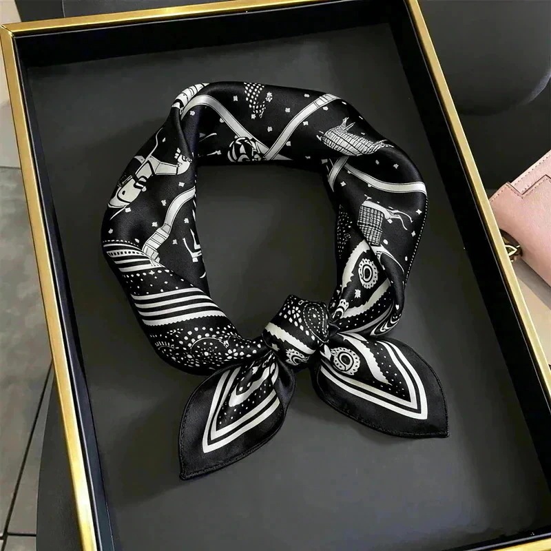 【父の日 母の日贈り物】シルク100% スカーフ 53cm 正方形 青 レトロ 抽象柄 ギフト包装 春 秋 ネッカチーフ プレゼント マフラー
