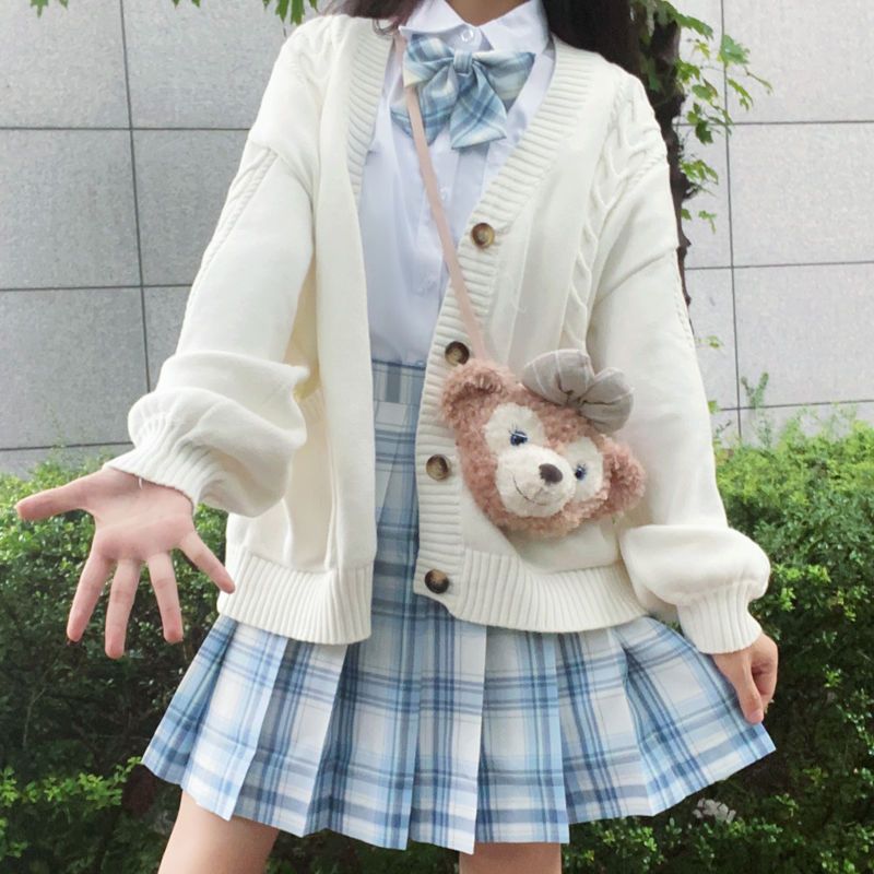 3日以内発送早速人気商品【4点セット】秋冬jkユニフォーム学院风蝶結びセーターシャツチェック柄スカート蝶ネクタイ