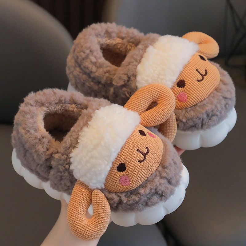 秋と冬の新しい子供の綿のスリッパ男の子と女の子の漫画かわいい暖かい屋内ホームベビーノンスリップバッグヒール綿の靴