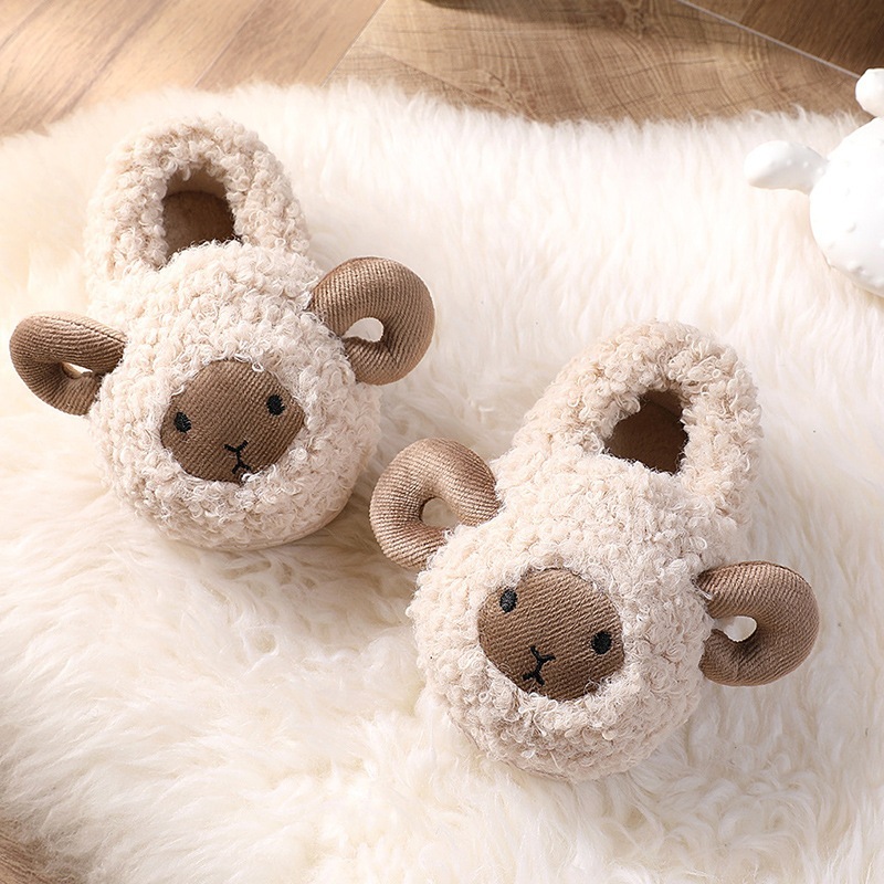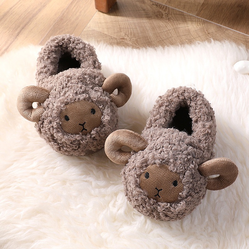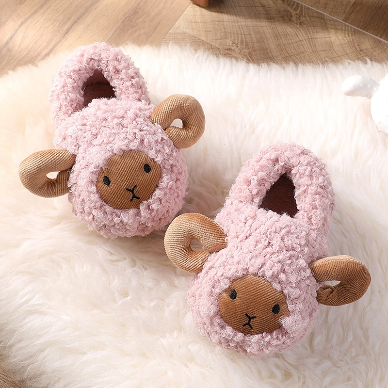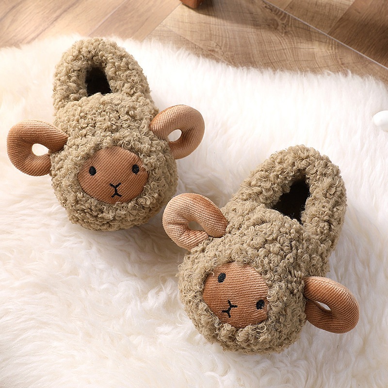 [クリアランス] 子供用綿スリッパバッグヒールホーム屋内滑り止めソフトソールラム漫画肥厚毛皮の靴