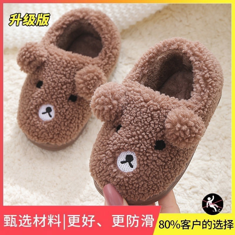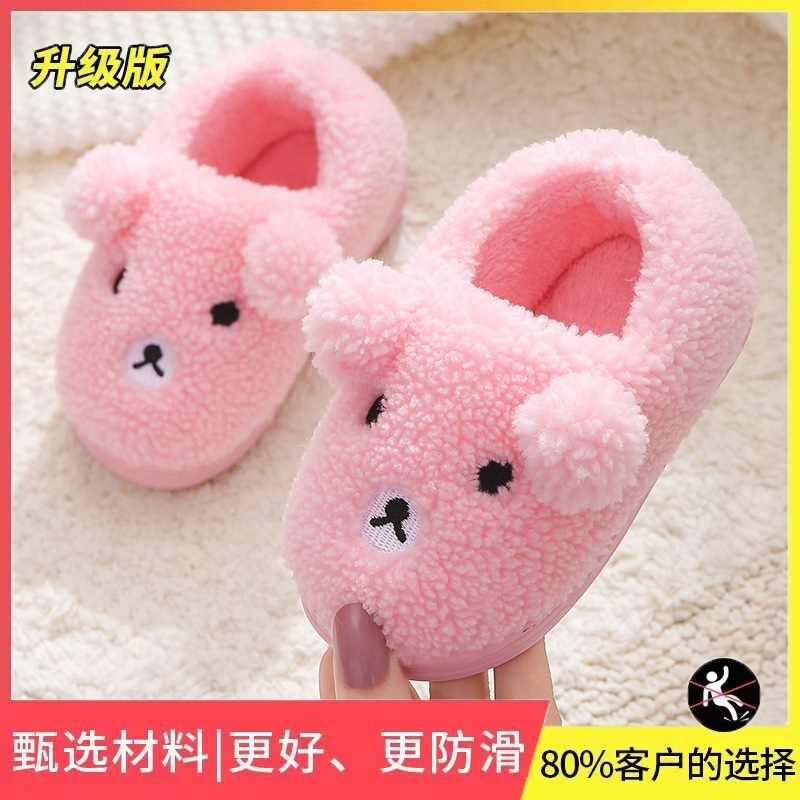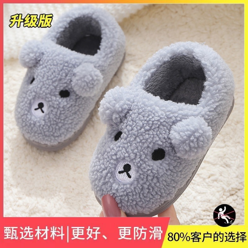 子供用の冬用の暖かい新しいスタイルの厚い滑り止めソフトソール大中小の子供用ホームバッグと綿の靴男の子と女の子の綿のスリッパ