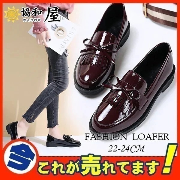 ローファー 靴 レディース タッセル スリッポン リボン 光沢 シューズ オフィス エナメル フリン3916