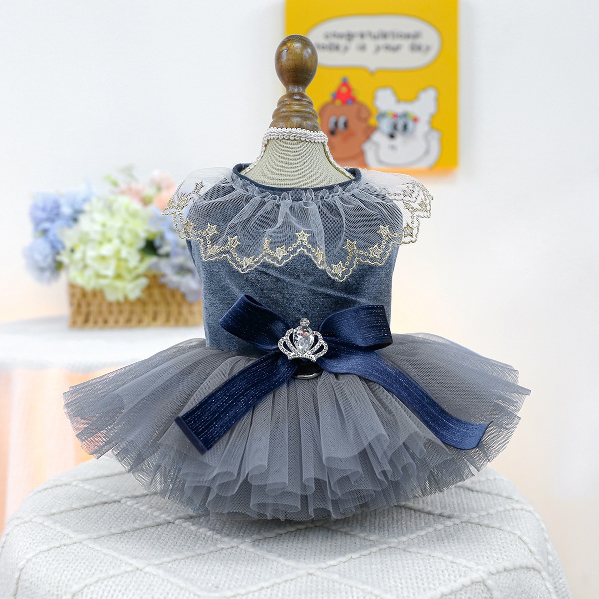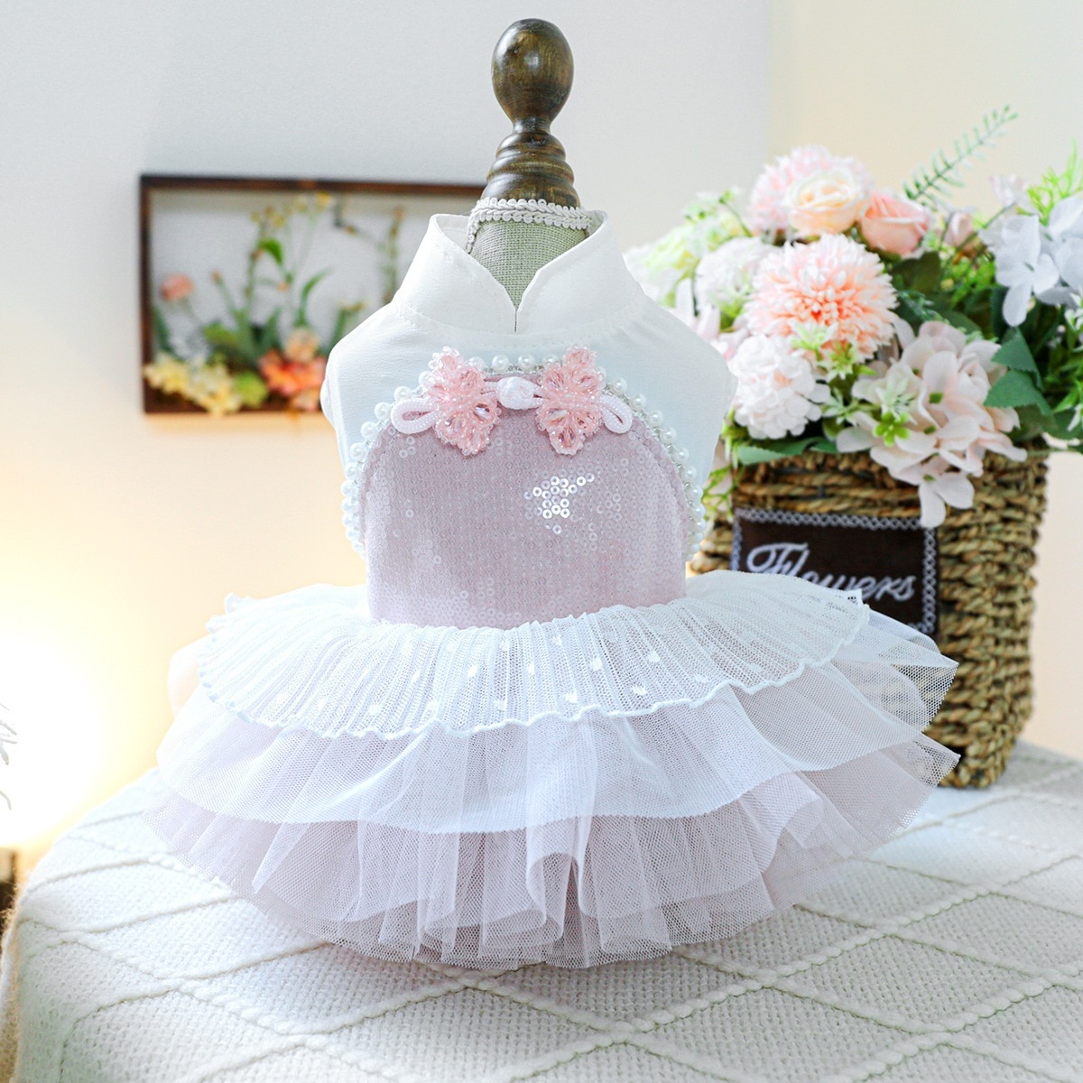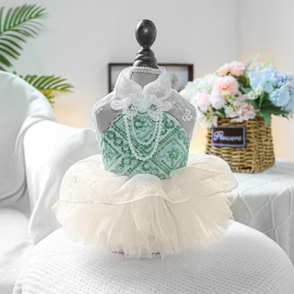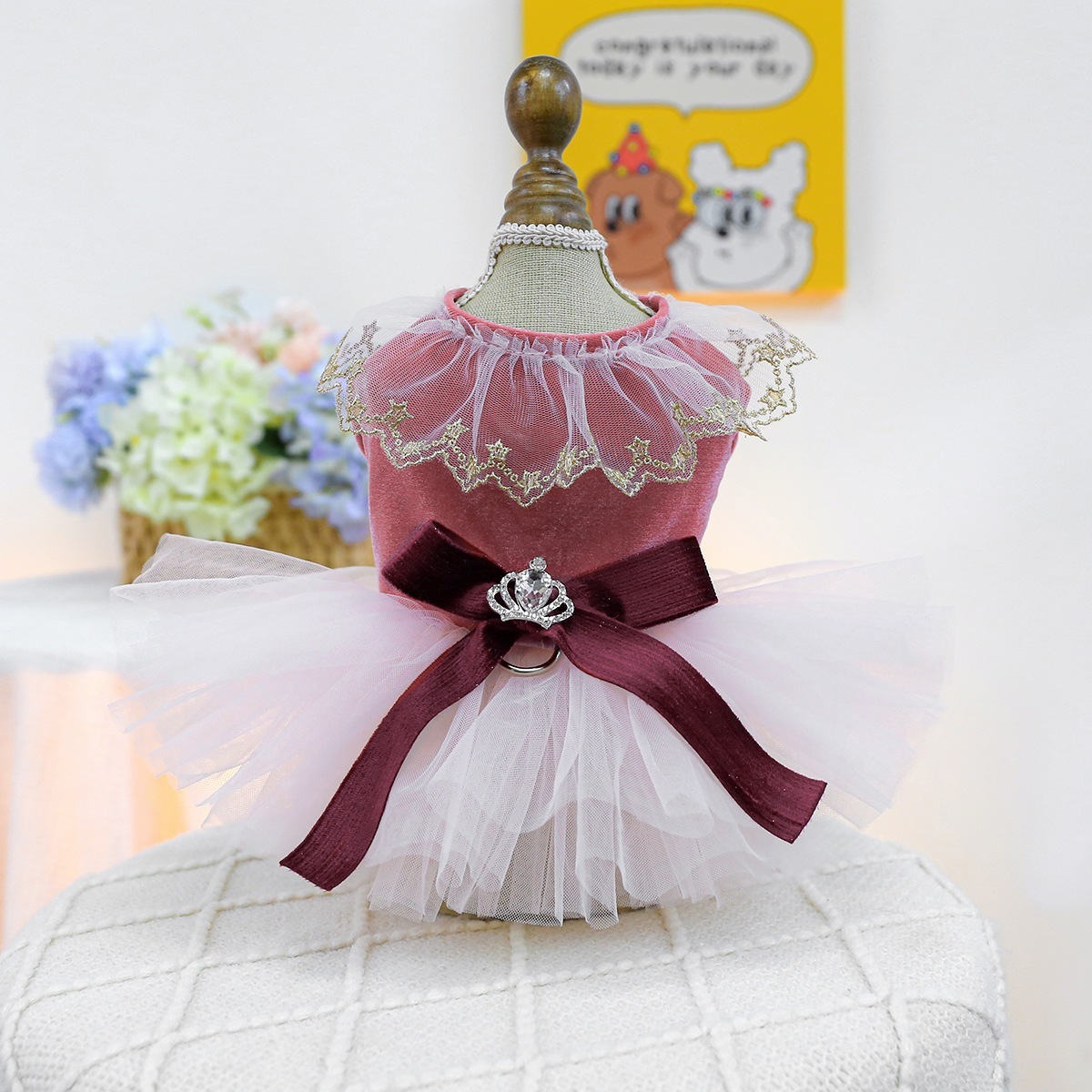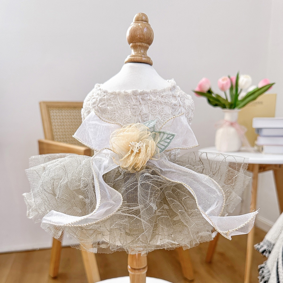 ペットサークル犬服ふわふわチュールスカート胸バック高級ドレススカートスイートハートウェディングドレス
