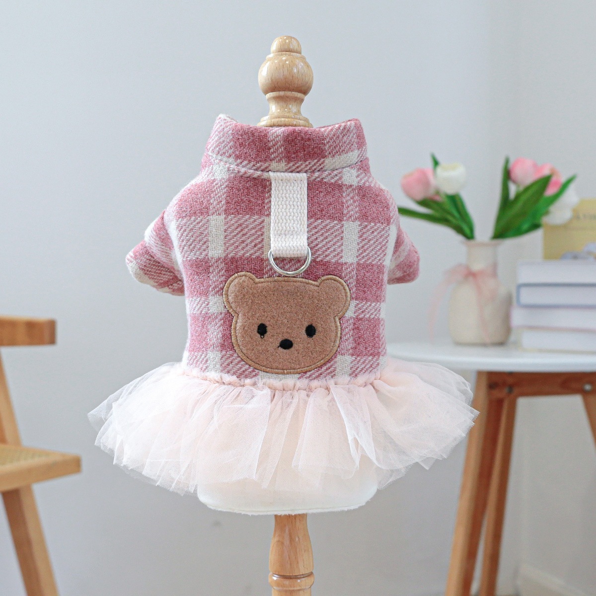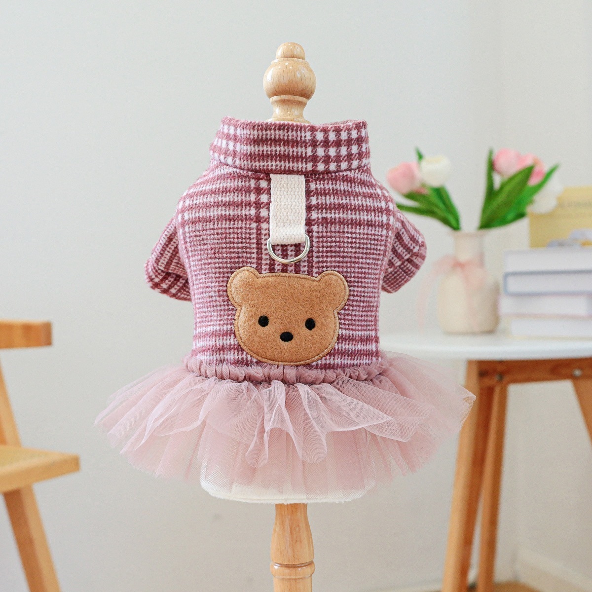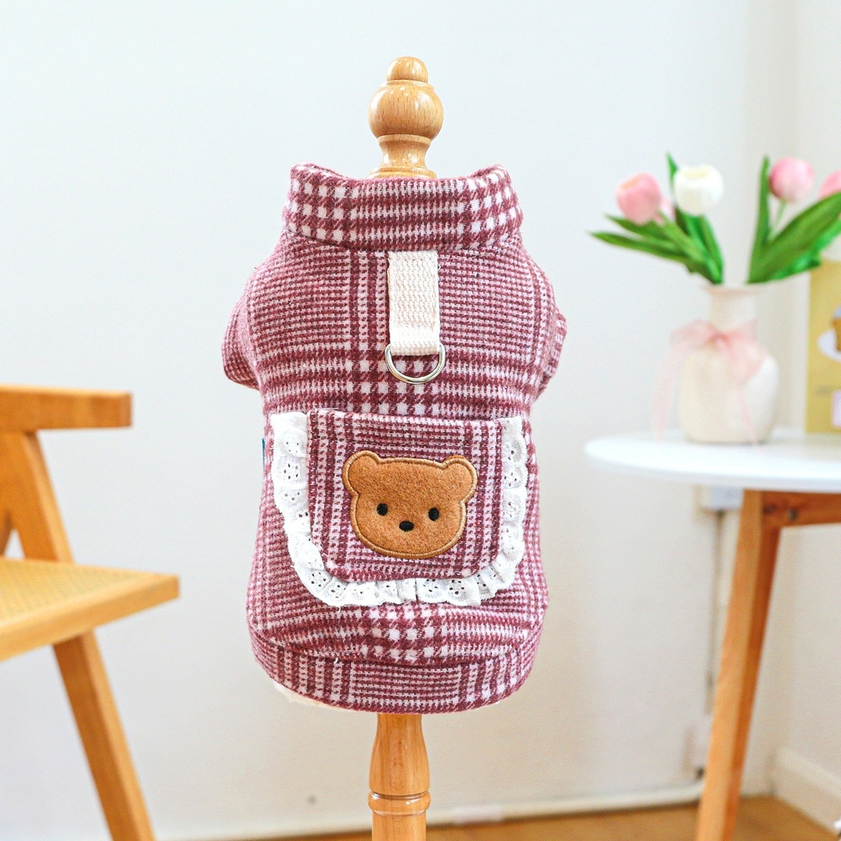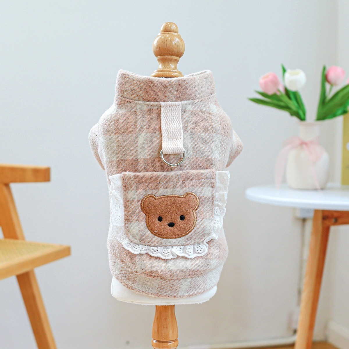 ペット服 子犬 犬服 秋冬 暖かい 防寒 かわいい チェック柄 ピンク クマ カップル 衣装