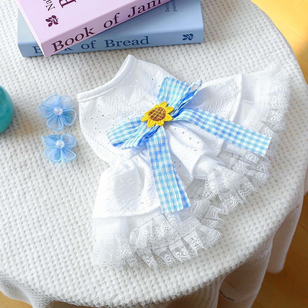 ペット犬服スカートガーゼスカート春と夏のプリンセス海塩チュチュスカート+ 2個のガーゼフラワーブルー