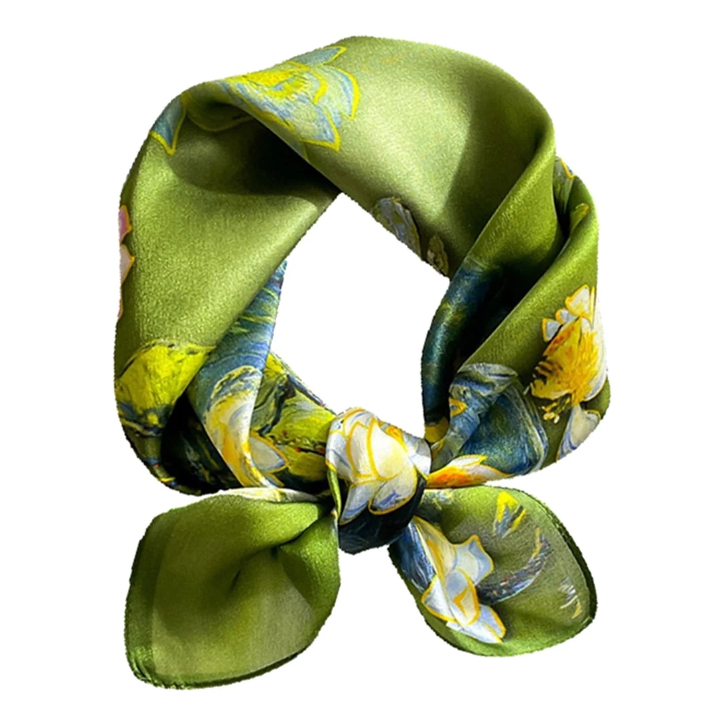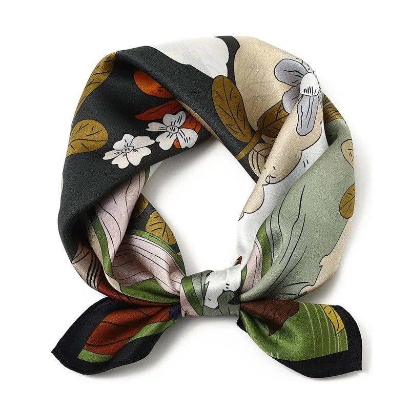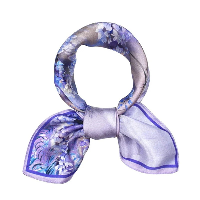 誕生日プレゼント】上質シルク100% スクエアスカーフ 53cm 紫 抽象花柄 秋冬 ギフト包装 対応 ネッカチーフ スカーフ ストール こだわりスカーフ