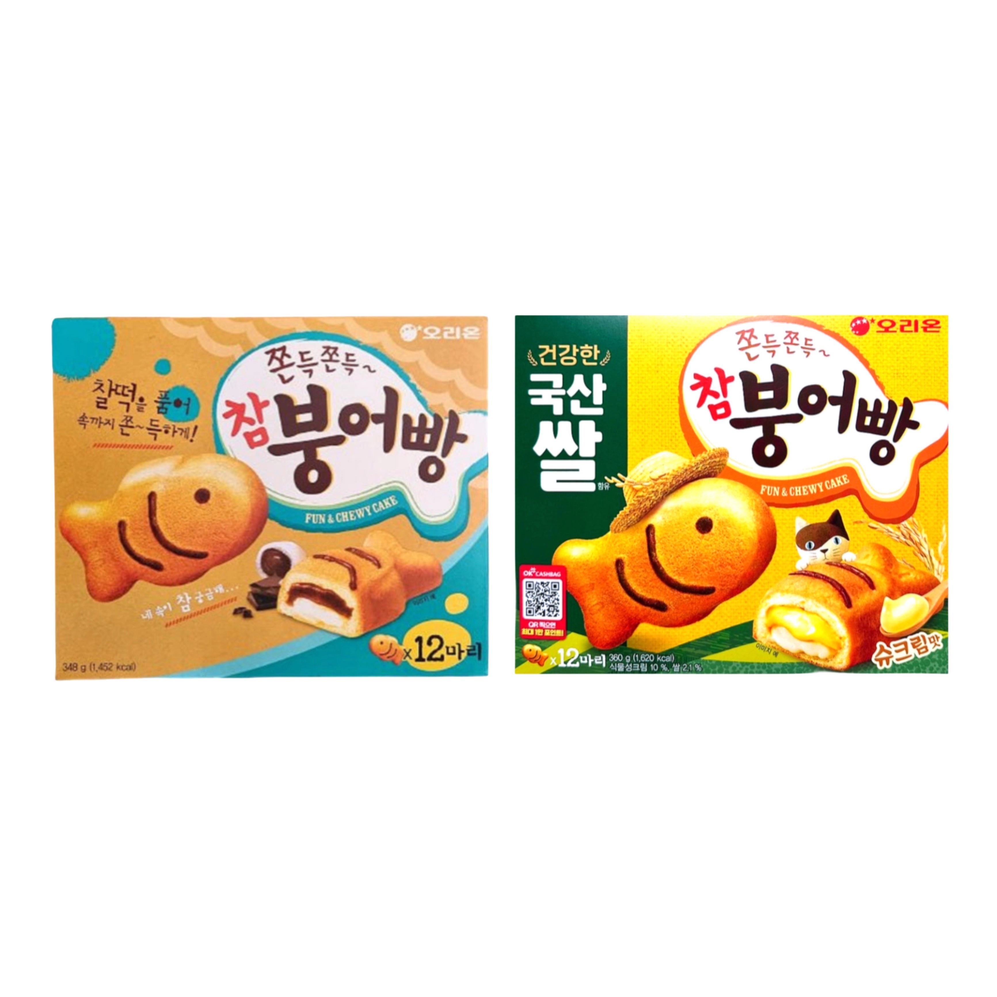 オリオン韓国正規品 参鯛ケーキ 348g/360g・もちもち餅入りチョコ&シュクリーム 12個入 魚型ケーキ おやつ・パーティーに